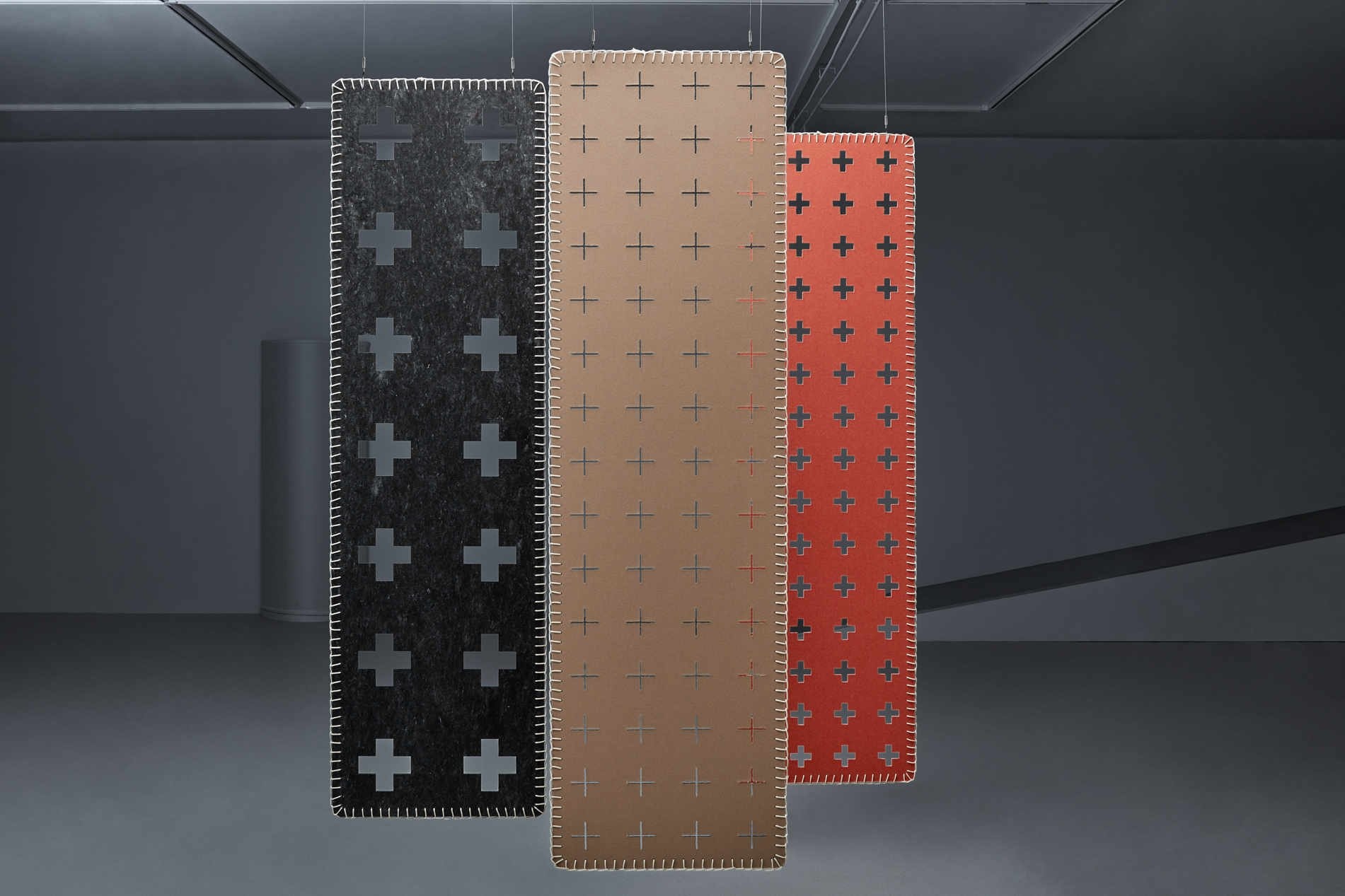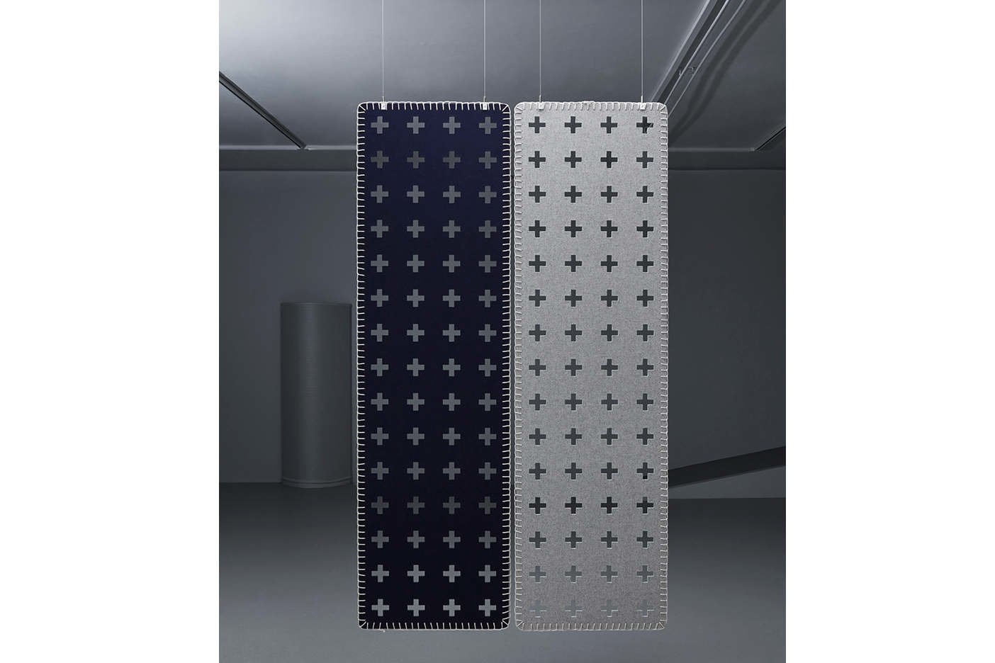 De Abstracta Combo Cross kan worden gezien als een versie van de beroemde Crux Deken uit 1991. Ook hier is de basisfunctie om te beschermen, niet tegen verkoudheid, maar tegen lawaai, en om eenvoudig een ruimte in kleinere units te verdelen. Kenmerken Abstracta Combo Cross akoestische hangelementen