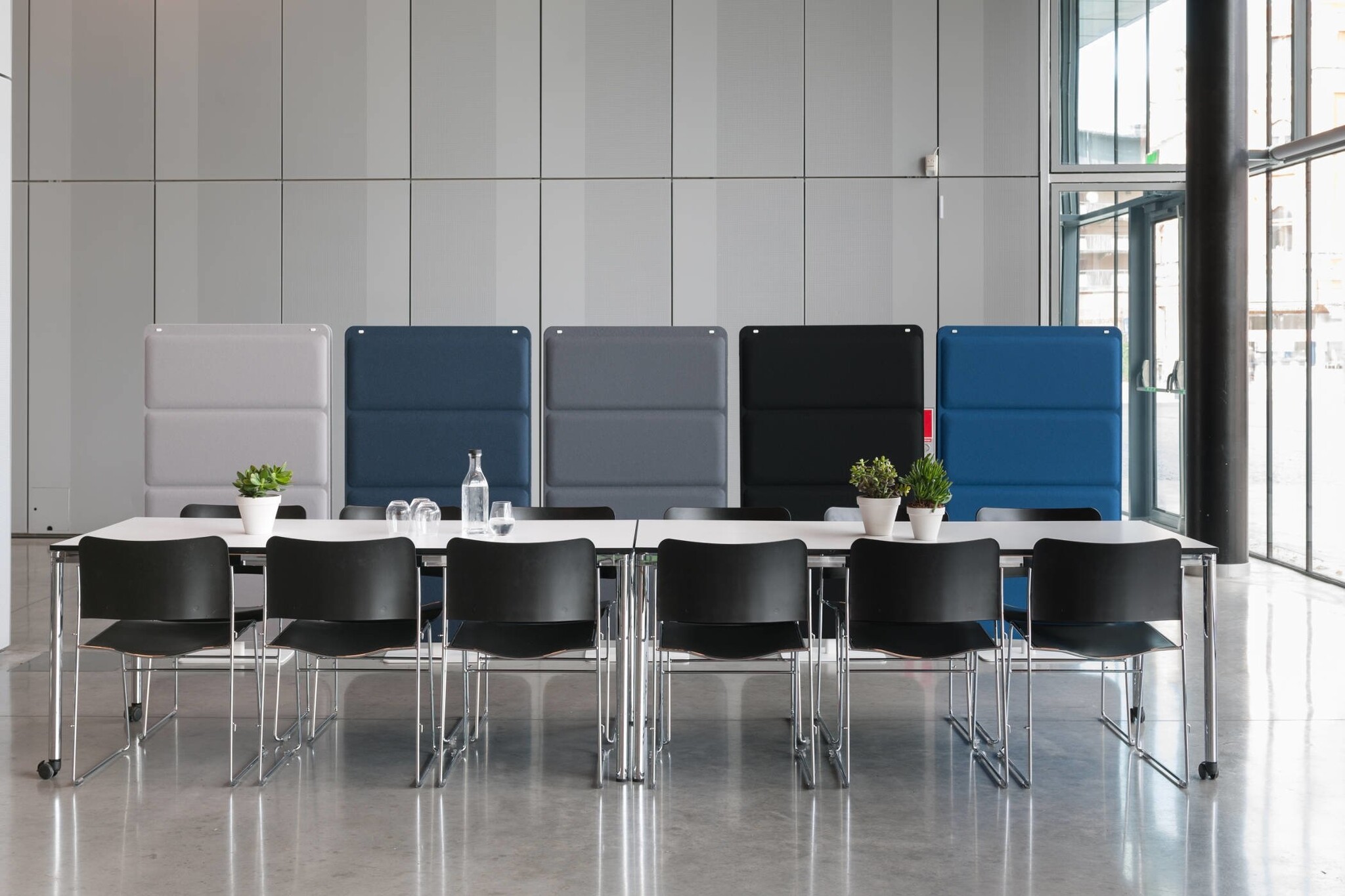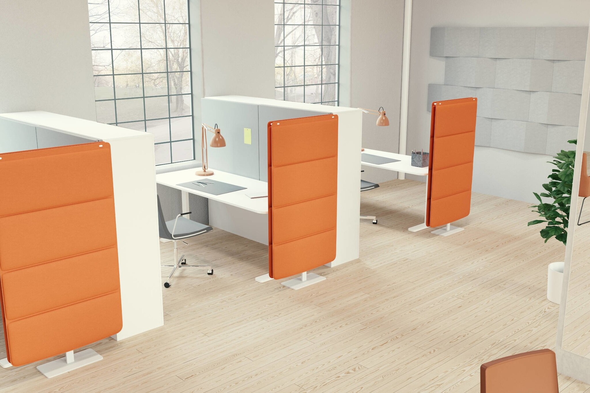 De hoogwaardig afgewerkte producten zijn ideaal voor het absorberen van geluid binnen de kantooromgeving. Het assortiment bestaat onder andere uit: akoestische schermen, akoestische wandpanelen, kamerverdelers en andere akoestische kantoor voorzieningen.