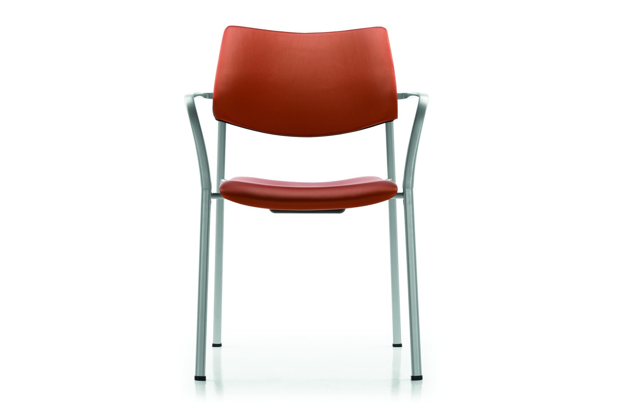 Stapelbare stoel met of zonder armleuningen. Het frame is gemaakt van gepoedercoat staal of verchroomd. Zitting en rug zijn gegoten van gefineerd (multiplex). De armleuningen zijn gemaakt van polyamide of gepoedercoated aluminium of gepolijst.