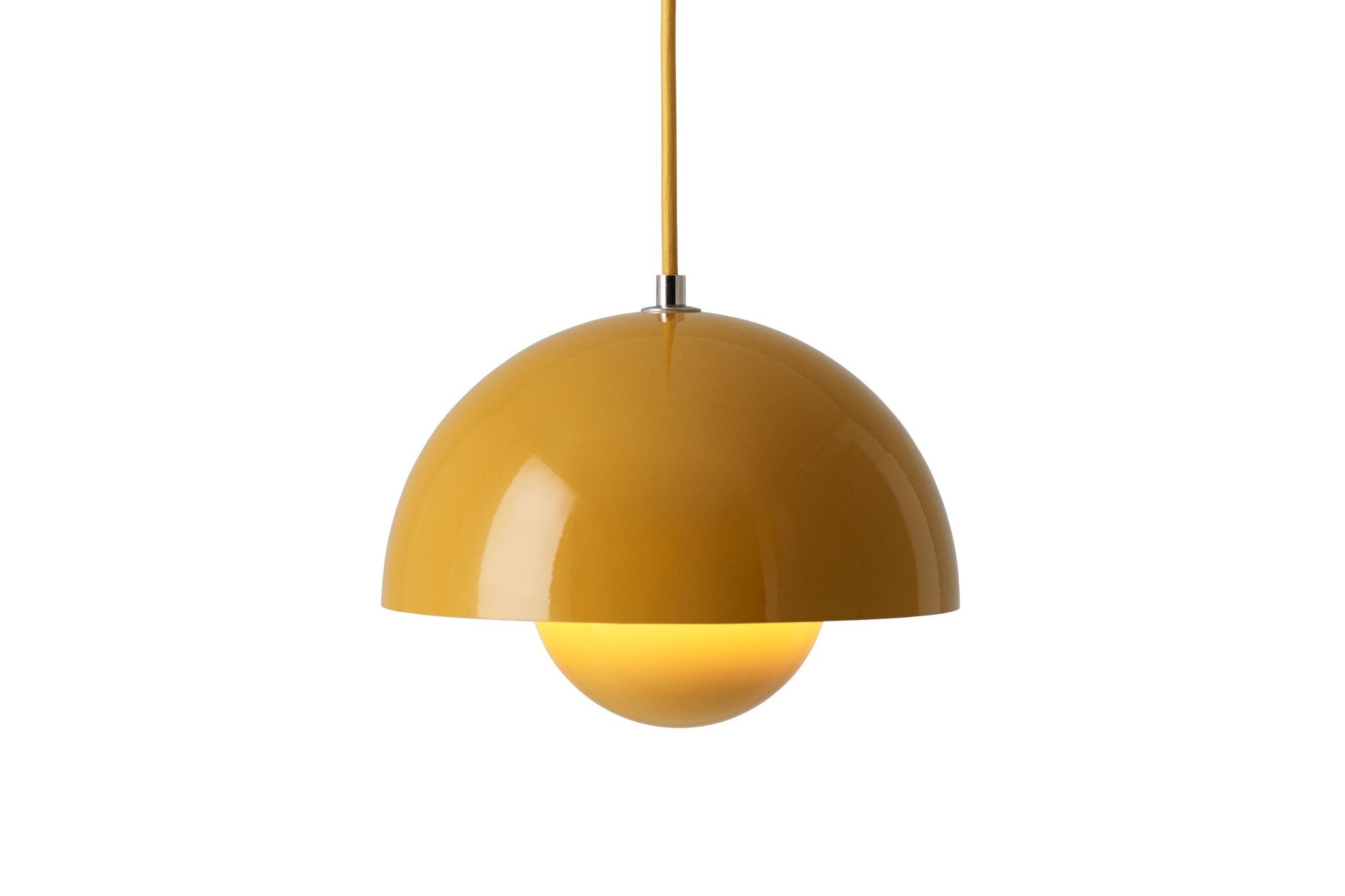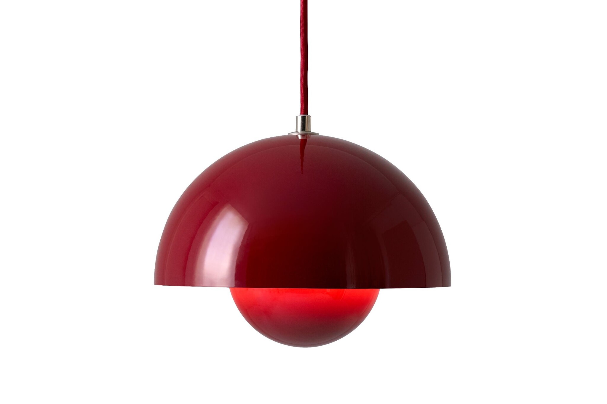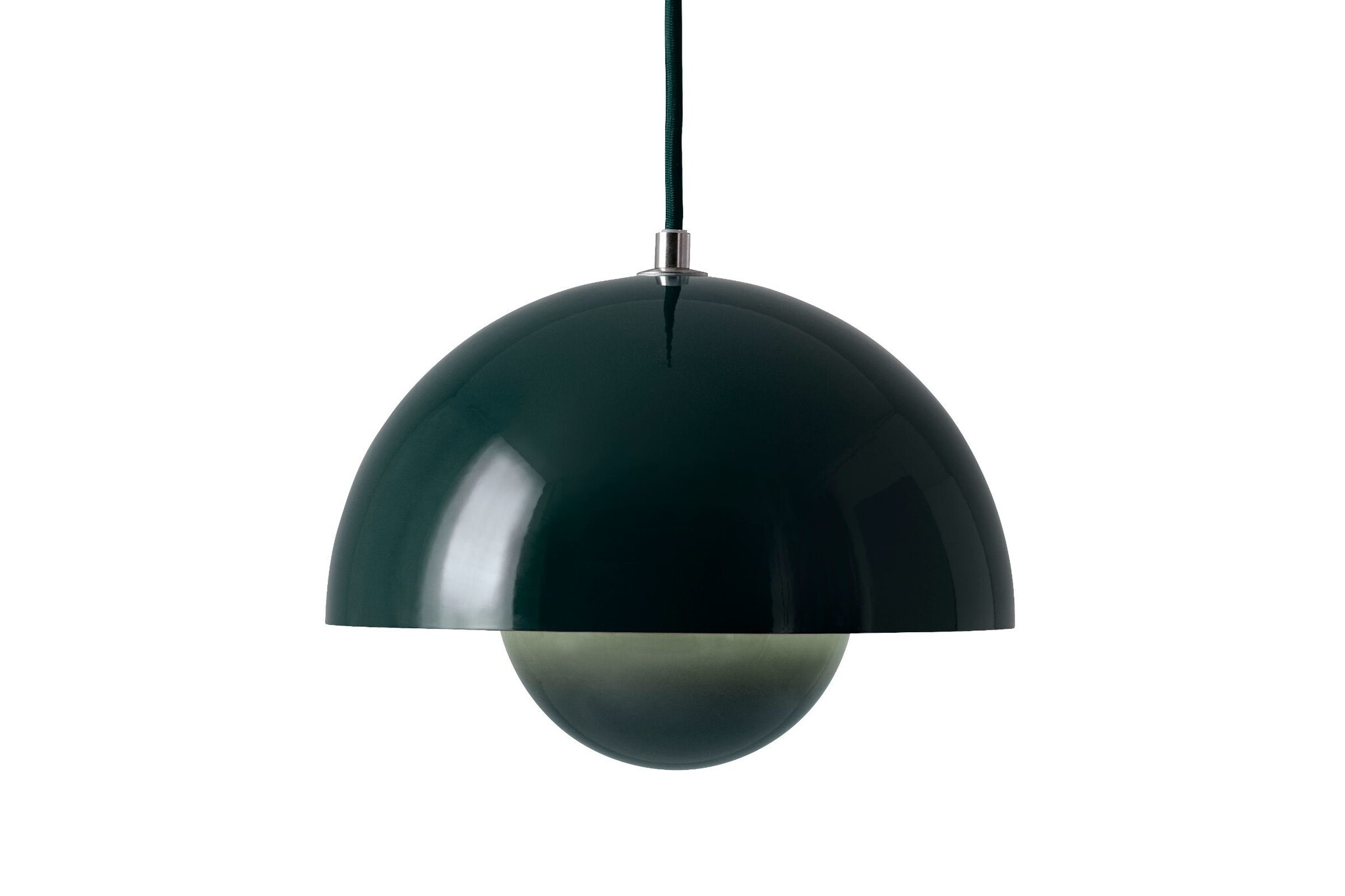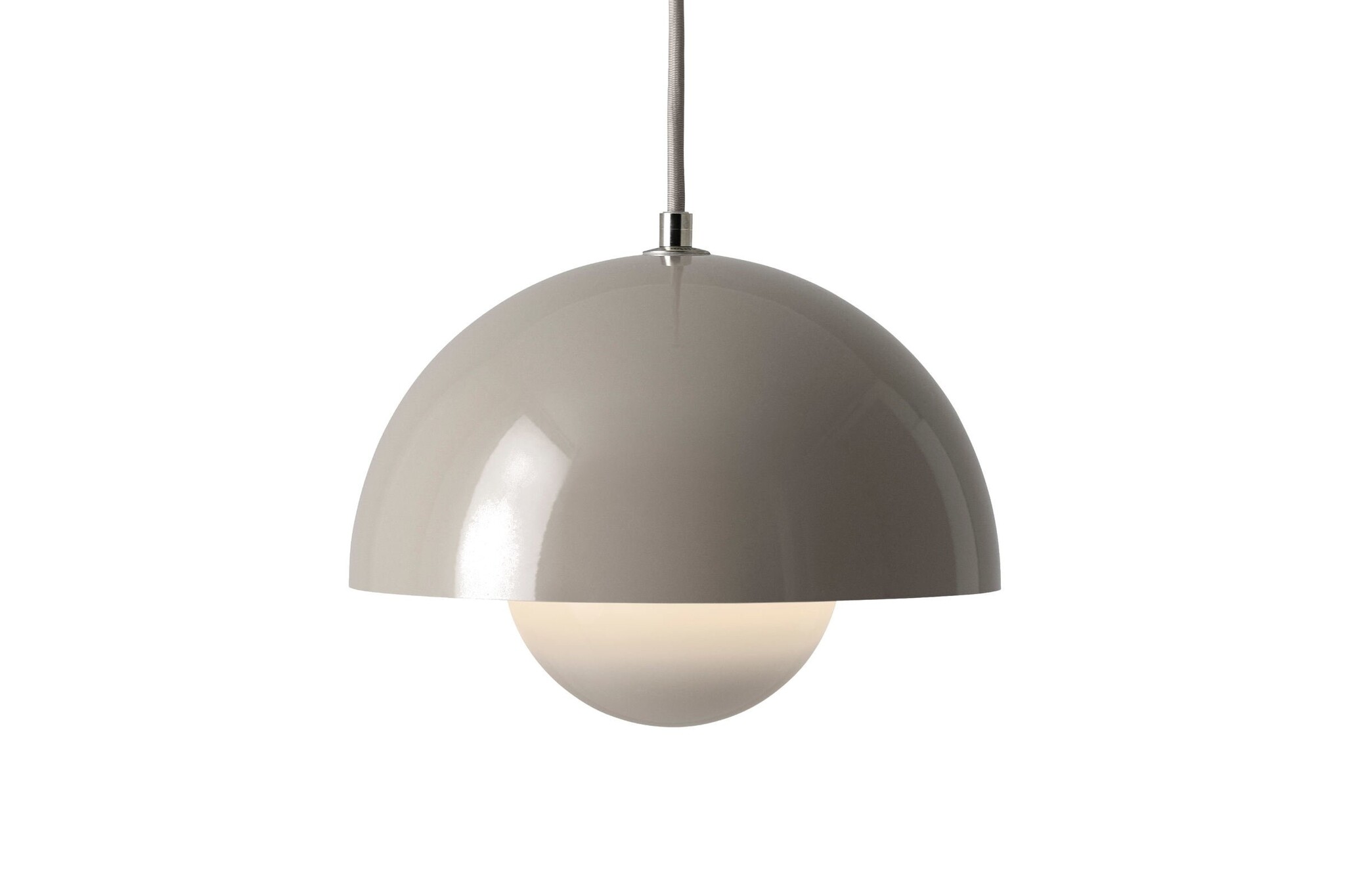 De &Tradition Flowerpot hanglamp en lamp bevat twee halfcirkelvormige bollen tegenover elkaar. De diameter van de bovenste bol tweemaal zo groot als de onderste. De lagere bol verbergt de lichtbron, terwijl het interieur dient als een kleurrijk reflecterend oppervlak. Klassiek ontwerp met moderne eigenschappen