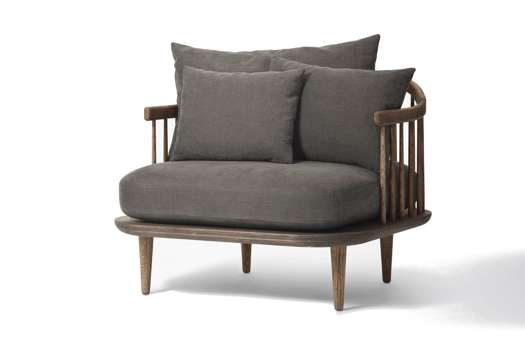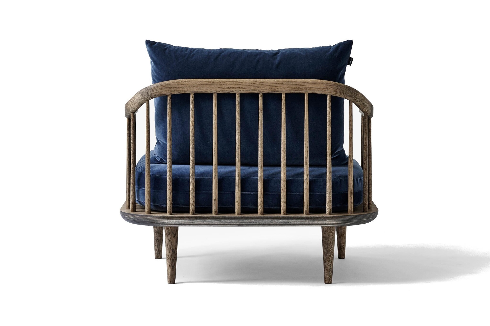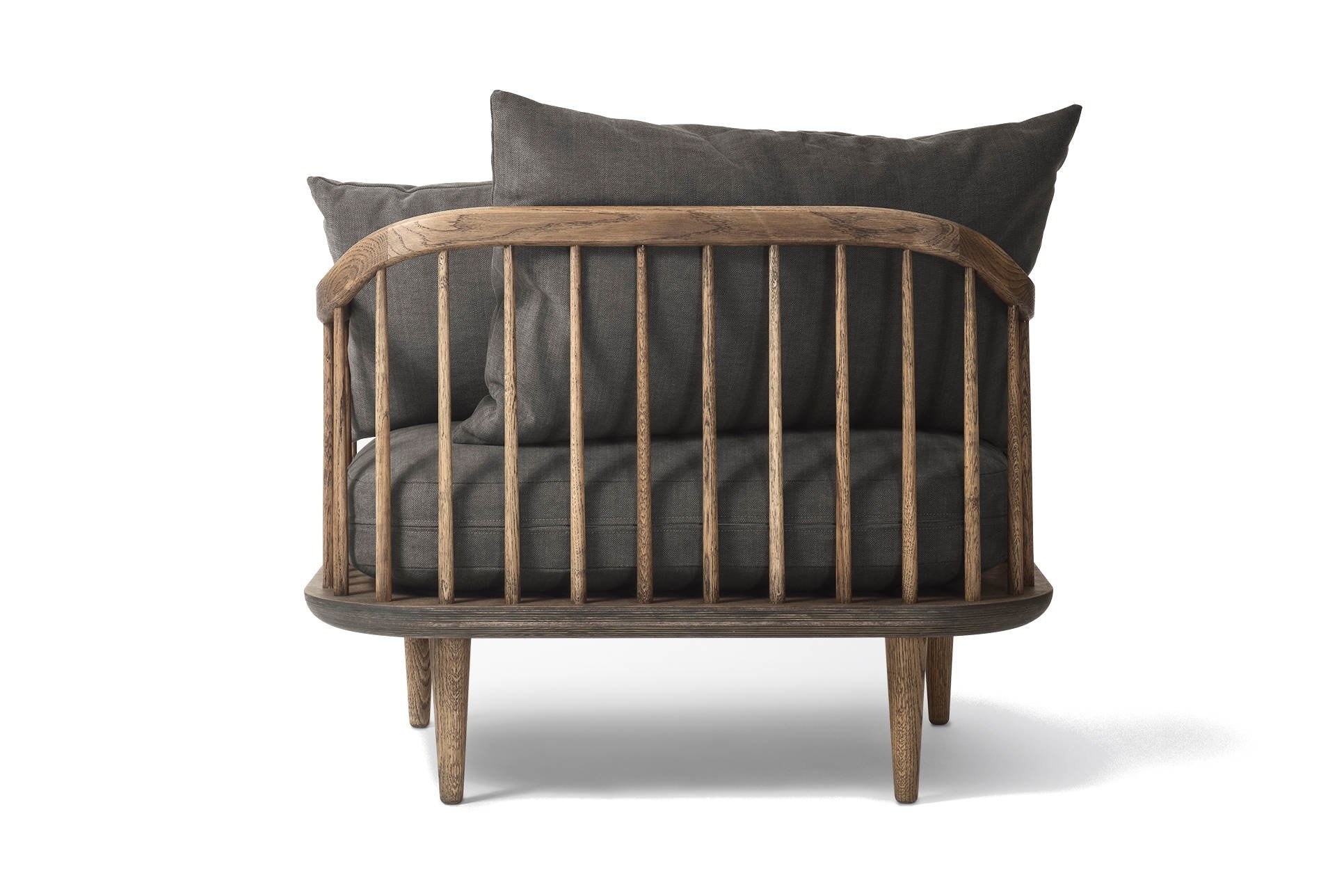 De &Tradition Fly Chair is met de hand gemaakt van massief eiken en eiken fineer met behulp van traditionele houtbewerking technieken. De kussens zijn van CMHR schuim in combinatie met veren en vervolgens bekleed met stof. Alle schuim, vezels en textiel worden gebruikt (met uitzondering van stoffering stof of leer) voldoen aan het vuur normen die relevant zijn.