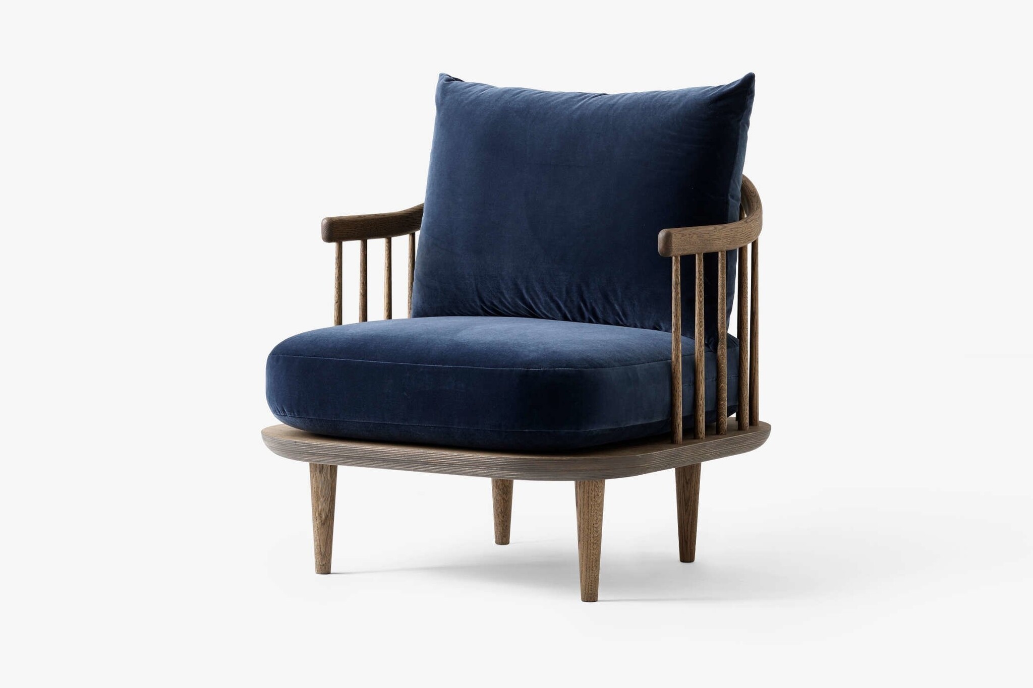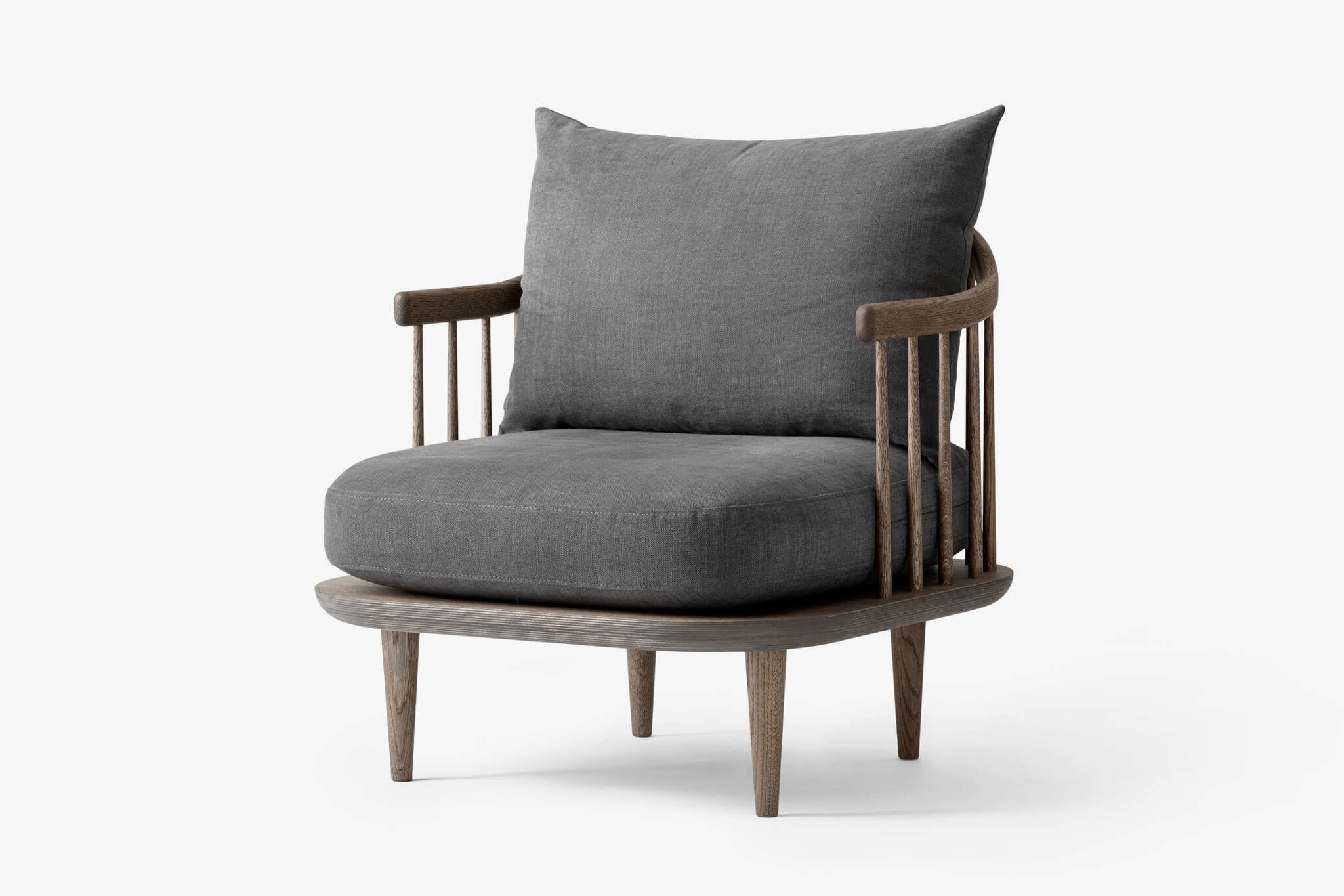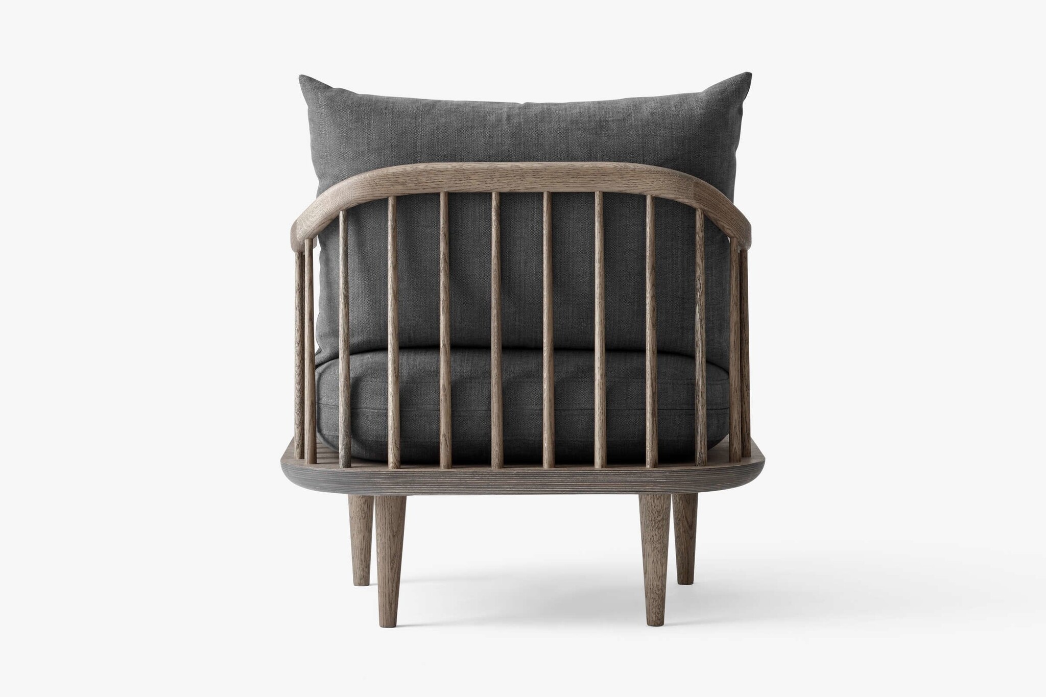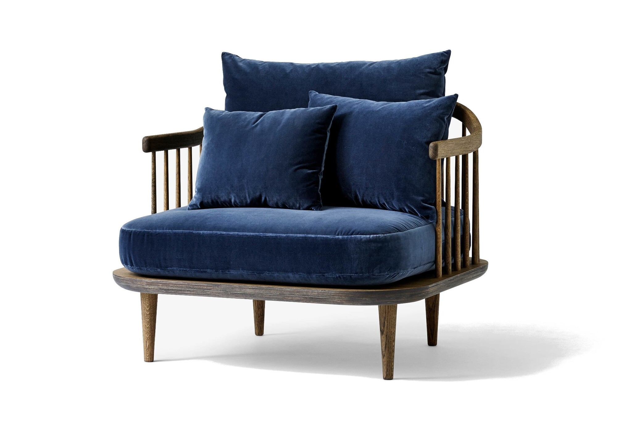 De &Tradition Fly Chair is met de hand gemaakt van massief eiken en eiken fineer met behulp van traditionele houtbewerking technieken. De kussens zijn van CMHR schuim in combinatie met veren en vervolgens bekleed met stof. Alle schuim, vezels en textiel worden gebruikt (met uitzondering van stoffering stof of leer) voldoen aan het vuur normen die relevant zijn.