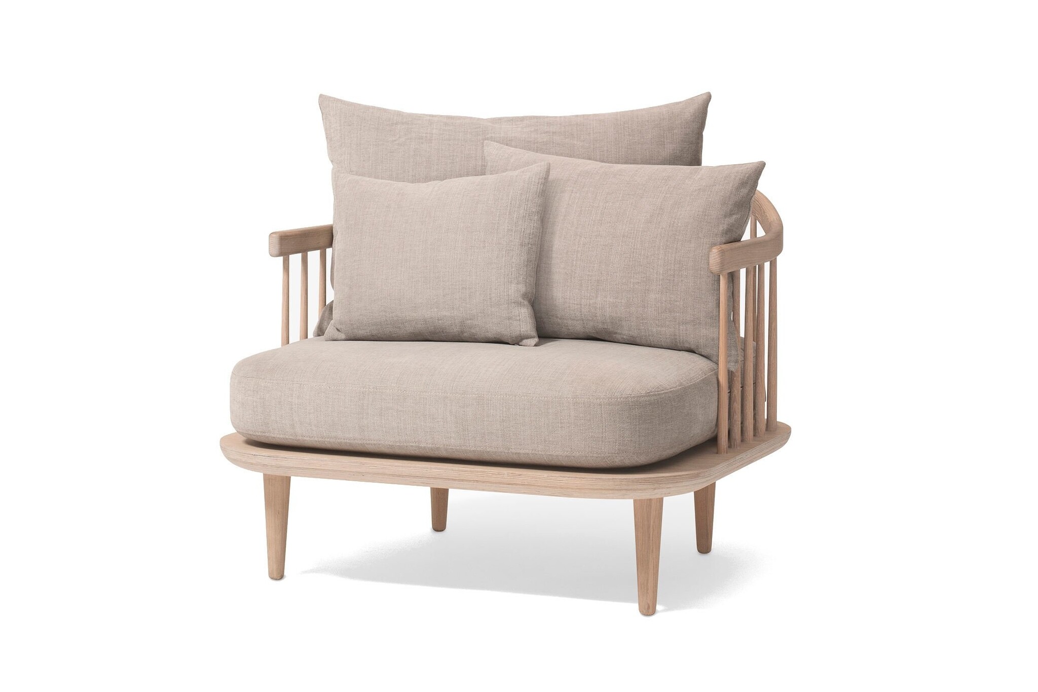 De &Tradition Fly Chair is ontworpen door Space Copenhagen en is een fauteuil. De zitting van deze fauteuil is comfortabel en met de losse kussens kan de gebruiker deze plaatsen op de locatie waar hij ondersteuning wenst. Of dit nu de armen of de rug is. De ideale loungefauteuil Hierdoor maakt deze loungefauteuil ook ideaal om toe te passen in wachtruimtes of een hotellobby. Ook zien we steeds vaker dat er ruimtes in kantoor gecreëerd worden voor ontspanning. Wanneer u meerdere &Tradition Fly Chair fauteuils bij elkaar plaatst, creëert u een informele loungeplek voor uw medewerkers om even bij te praten of te ontspannen. Plaatse de bijpassende poefen erbij uit de Fly collectie en uw zitje is compleet!