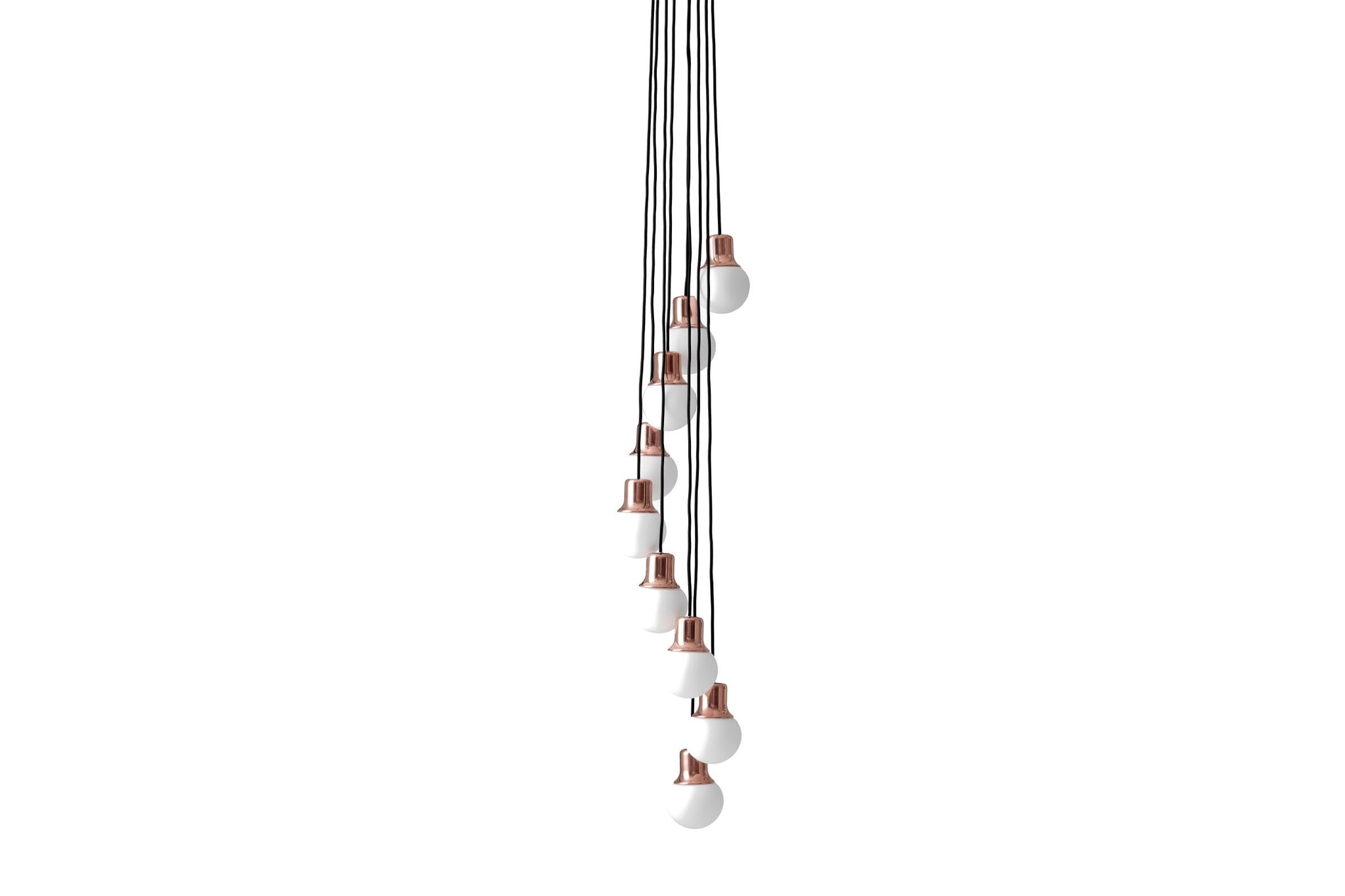 Later werden er twee andere hoogwaardige materialen toegevoegd in de vorm van koper en messing. De glazen kap is gemaakt van mondgeblazen en zuur geëtst opaalglas.