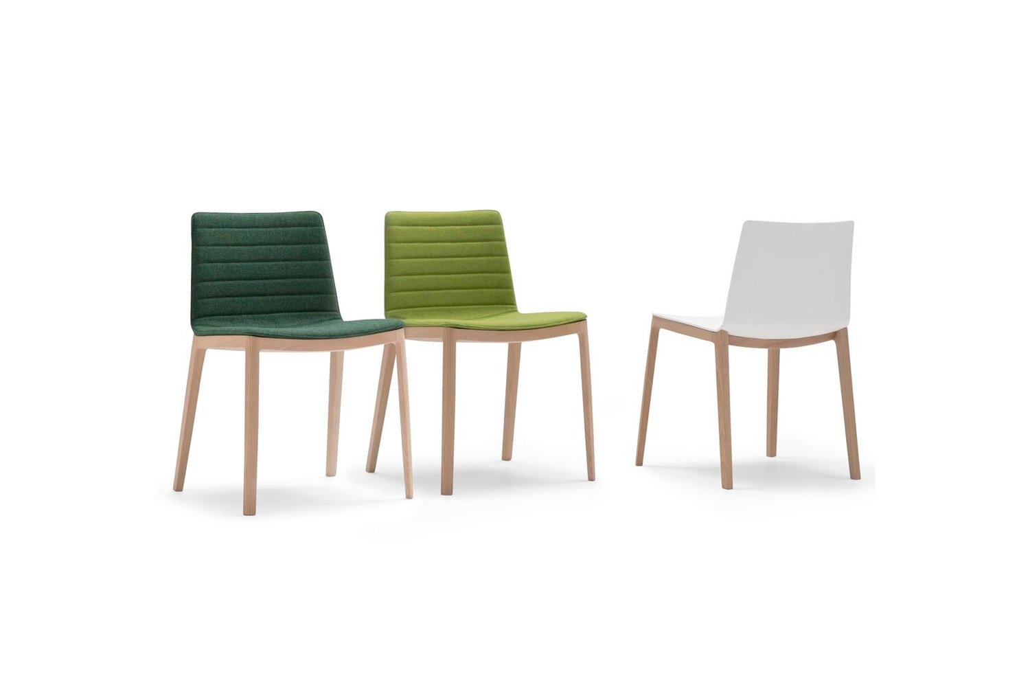 De Flex Chair is verkrijgbaar in verschillende kleuren, dit is vooraf afhankelijk van het materiaal wat gebruikt wordt (staal/hout). Meer informatie hierover is te vinden in de brochure. Voor de stoffen bekleding is er keuze uit wit, zandkleurig, grijs, rood, donkergrijs, zwart en groen.