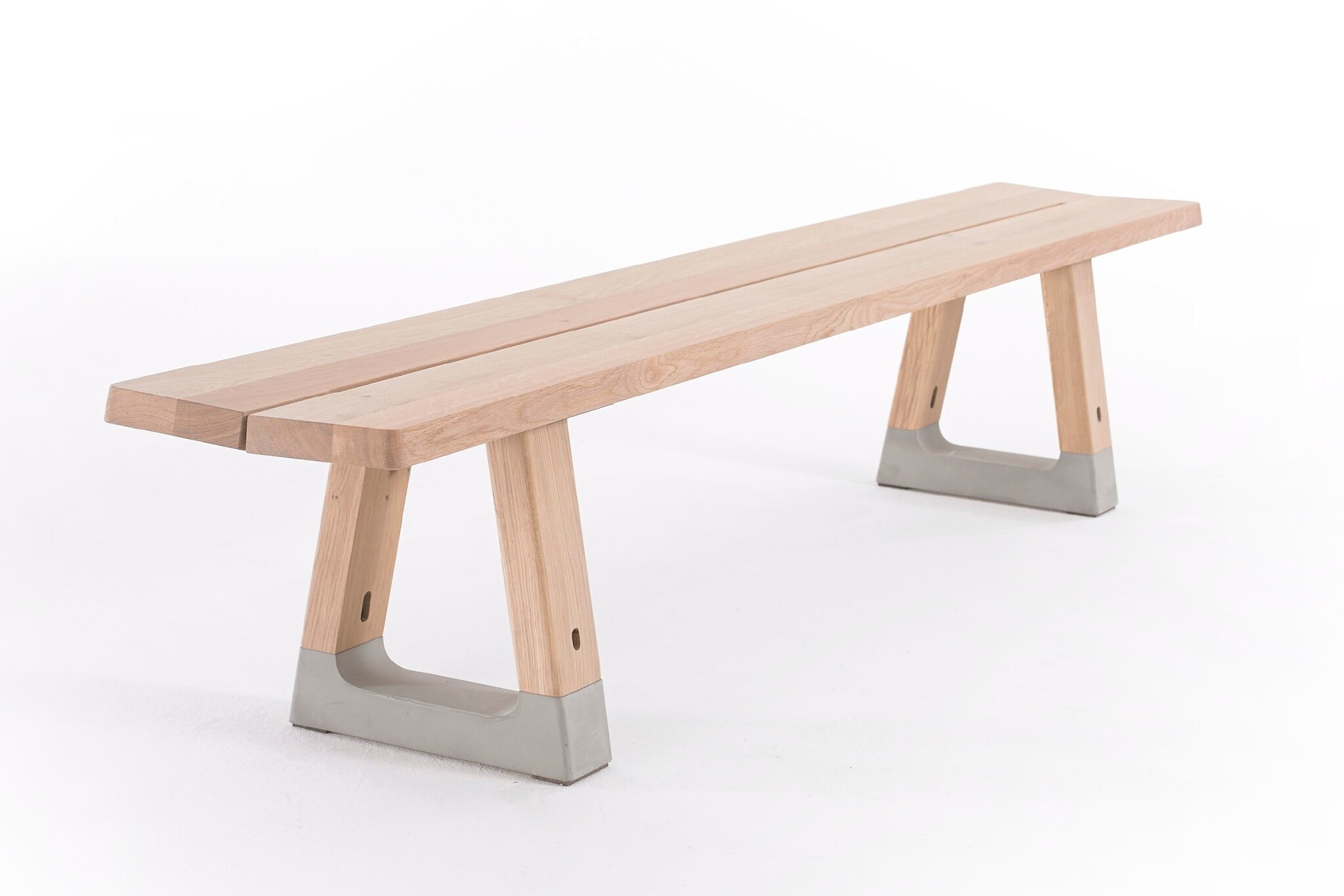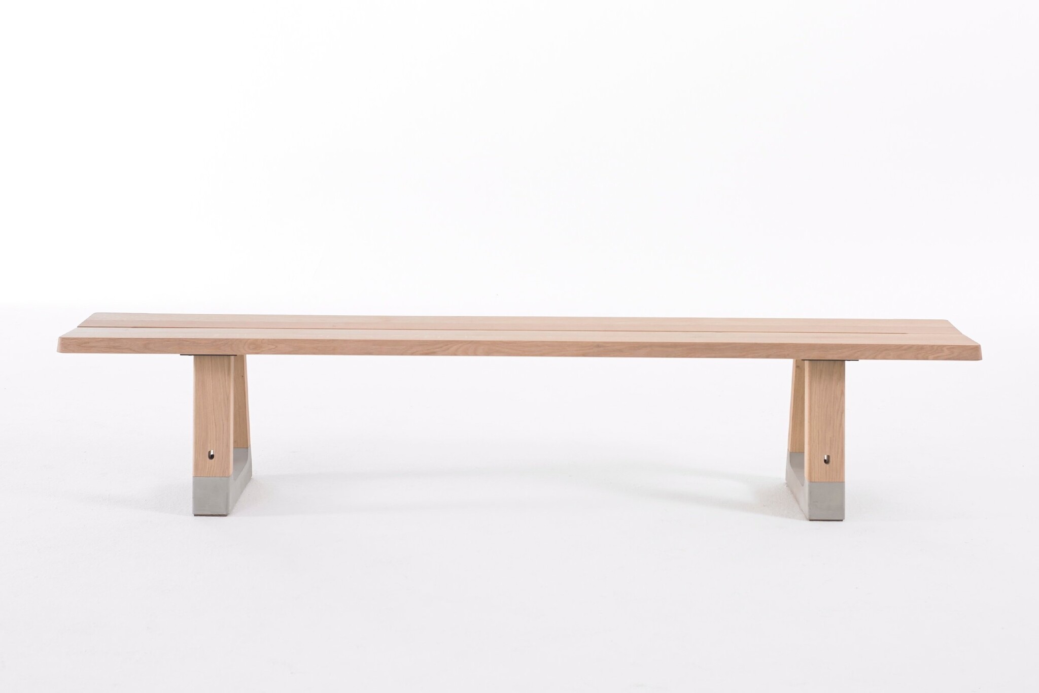 Deze stevige Arco Base Bench kunt u natuurlijk ook los gebruiken, zonder de tafel. Hij doet ons een beetje denken aan de banken die je in de gymzalen tegenkwam.