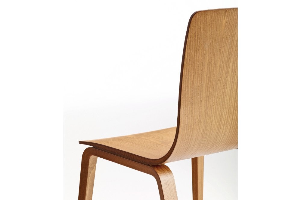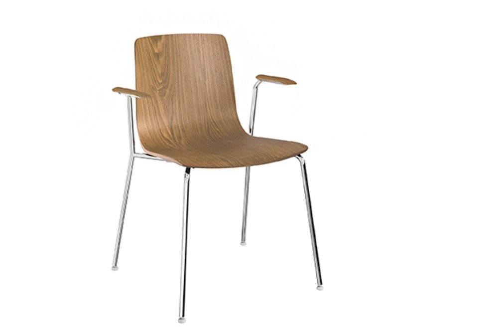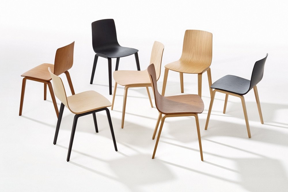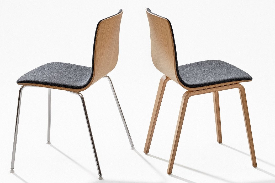 Voor het onderstel is de Arper Aava 4-poots stoel leverbaar met houten poten of poten in chroom. De Arper Aava slede stoel heeft een chroom onderstel.