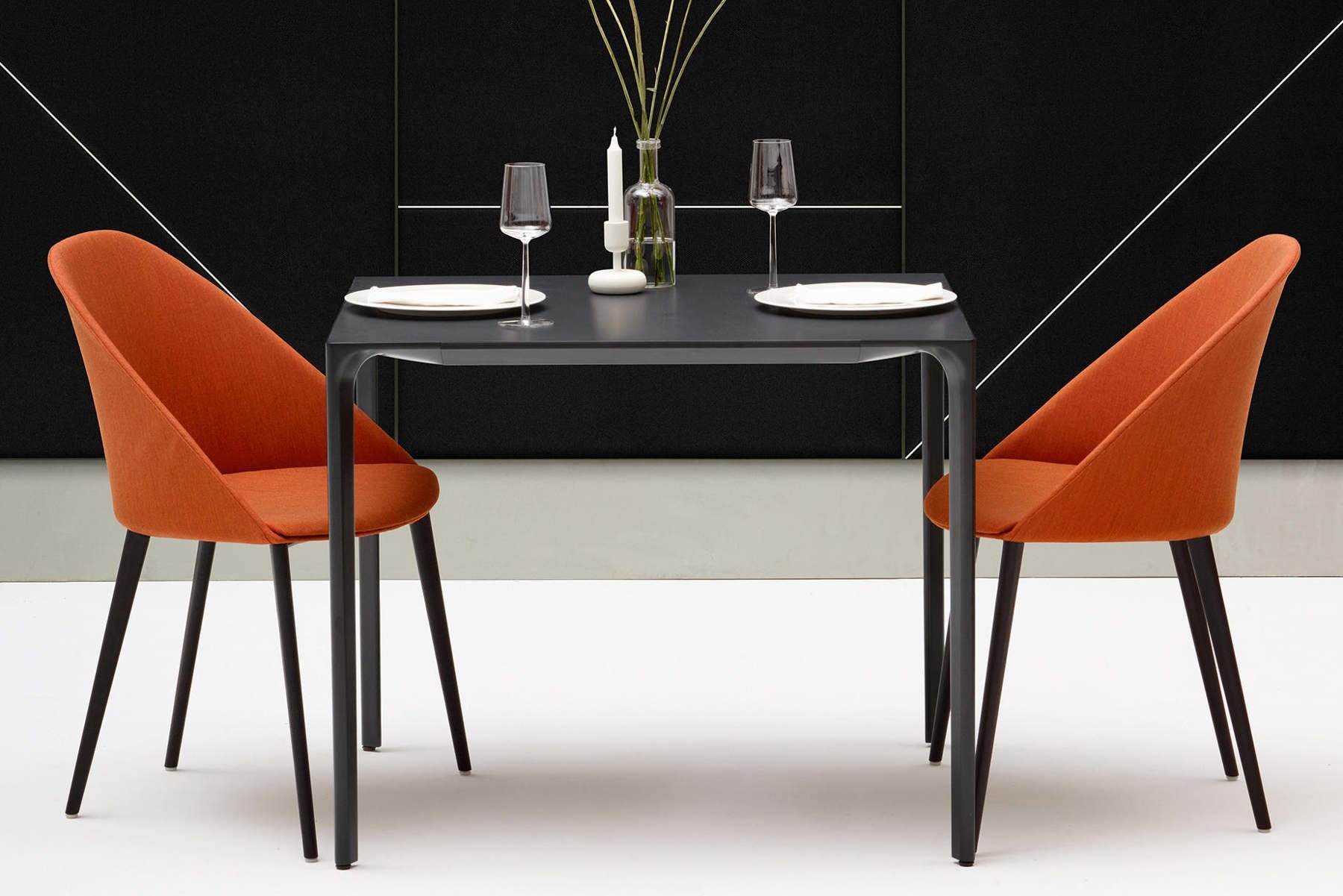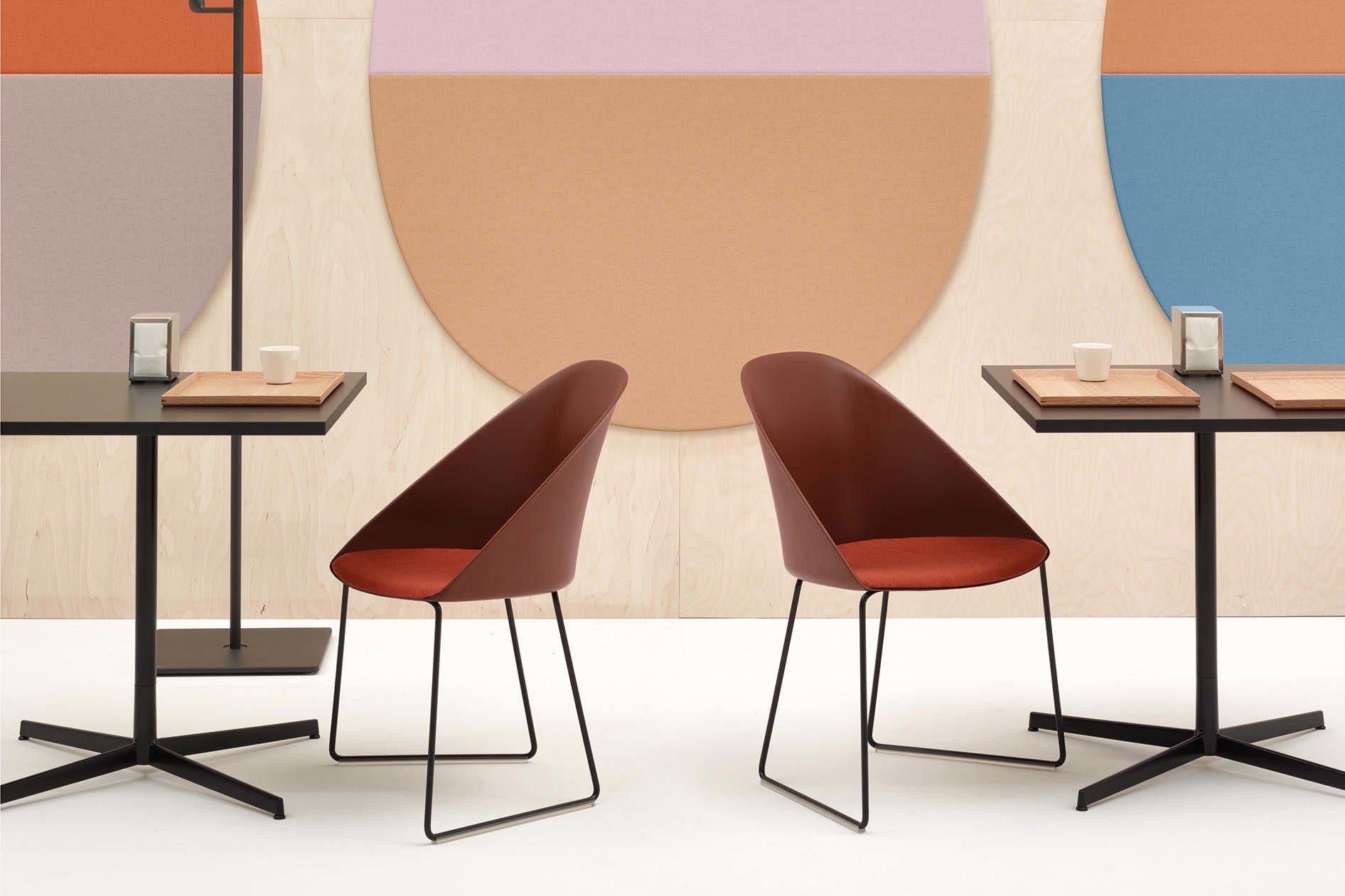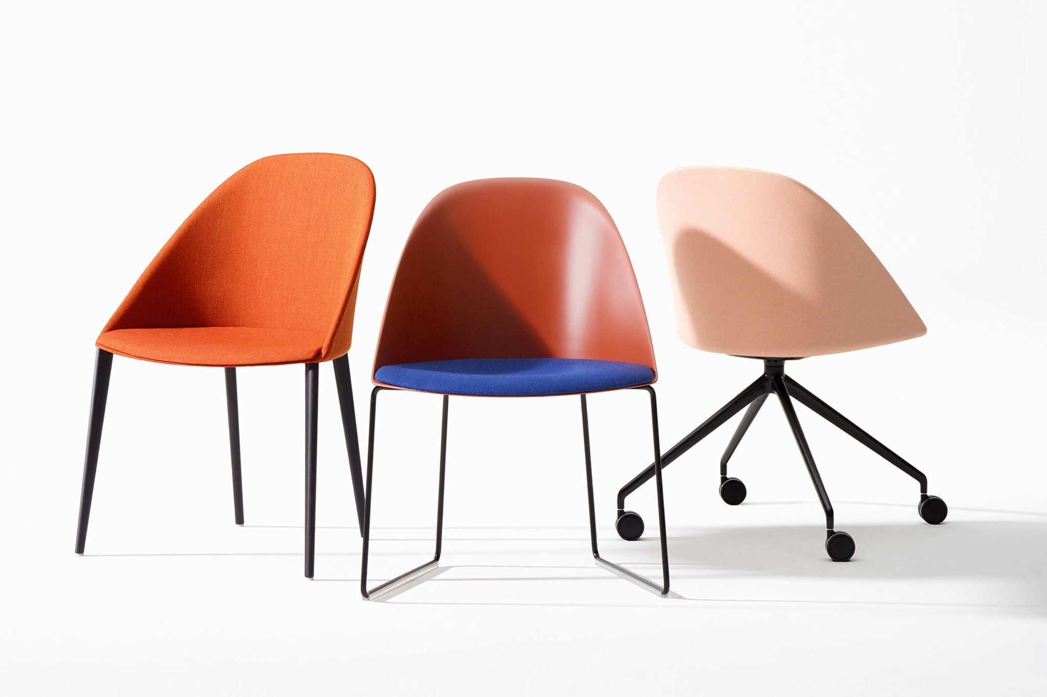 De comfortabele en toch lichte Cila is leverbaar met een kunststof schaal en kan in vijf kleuren worden aangepast met optionele zitkussens of volledig bekleed met verschillende texturen, kleuren en stijlen.