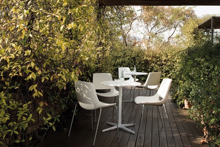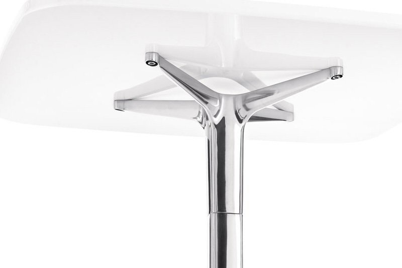 De Arper Fred heeft een stervoet onderstel in glanzend of witgelakt aluminium.