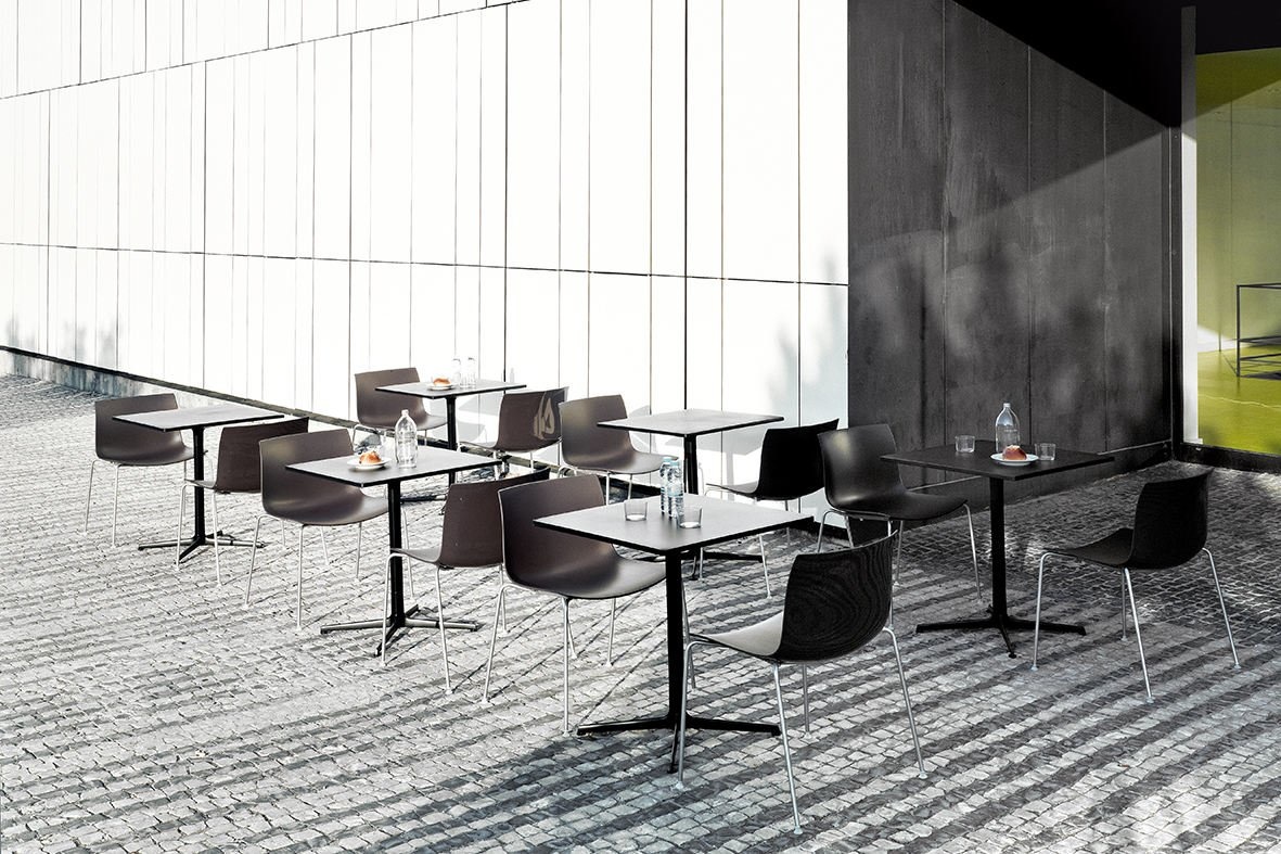 De Ginger van Arper is een slanke, veelzijdige tafel, ideaal voor in uw bedrijfsrestaurant of ontvangstruimte. Met strakke lijnen en een visueel onderscheidend, uitzonderlijk stevig onderstel. Verkrijgbaar in drie hoogtes (50, 74 en 105 cm) met zowel ronde als vierkante polypropilene tafelbladen in verschillende maten.Zowel de tafelbladen als de onderstellen zijn verkrijgbaar in drie kleuren: zwart, grijs en wit.