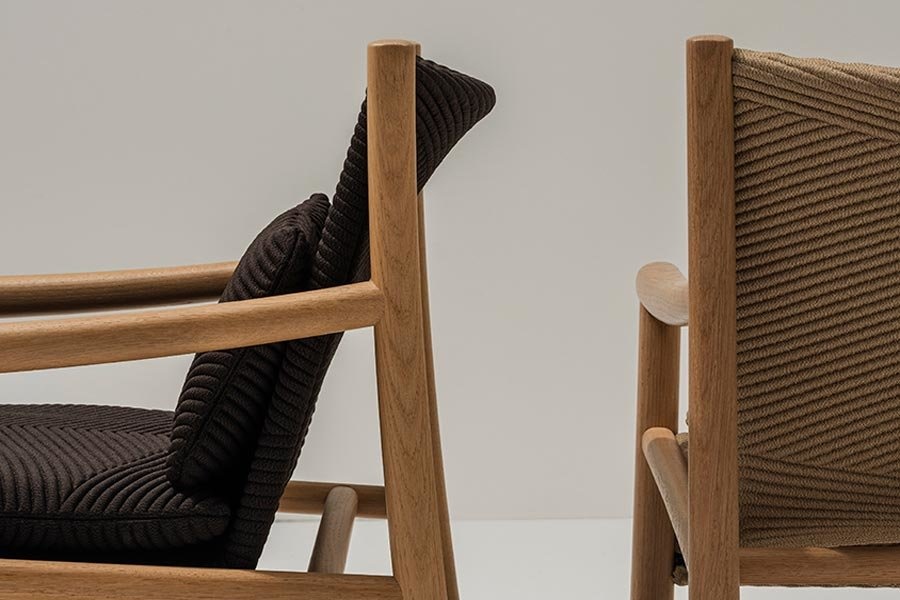 De inspiratie van de Arper Kata is de ambachtelijk gemaakte stoelen van hout en geweven stro. Het materiaal voor de zitting is echter geen stro, maar een polyestervezel en van een afstand niet te onderscheiden van stro.