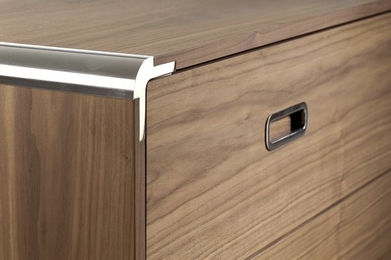 Artifort Extens heeft een unieke uitstraling en een sterke constructie. Het nieuwe constructie principe van Extens maakt gebruik van geavanceerde lijntechnieken om aluminium hoekelementen met houten panelen te verbinden.