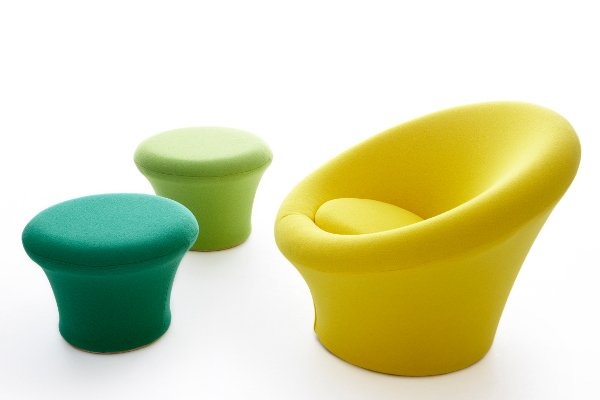 Dit is een bekend ontwerp van Pierre Paulin. Artifort Mushroom fauteuil is een ware eyecatcher, uitnodigend, royaal, zacht en comfortabel. De Mushroom is uitgegroeid tot een ware familie die bestaat uit Mushroom, Mushroom P poef, Mushroom Junior, Big Mushroom. De Mushroom is om in weg te kruipen en om van te genieten. Alle leden van de Mushroom familie bestaan uit een stalen frame dat wordt voorzien van snijschuim, dacron en een stoffering van rekbare meubelstof.