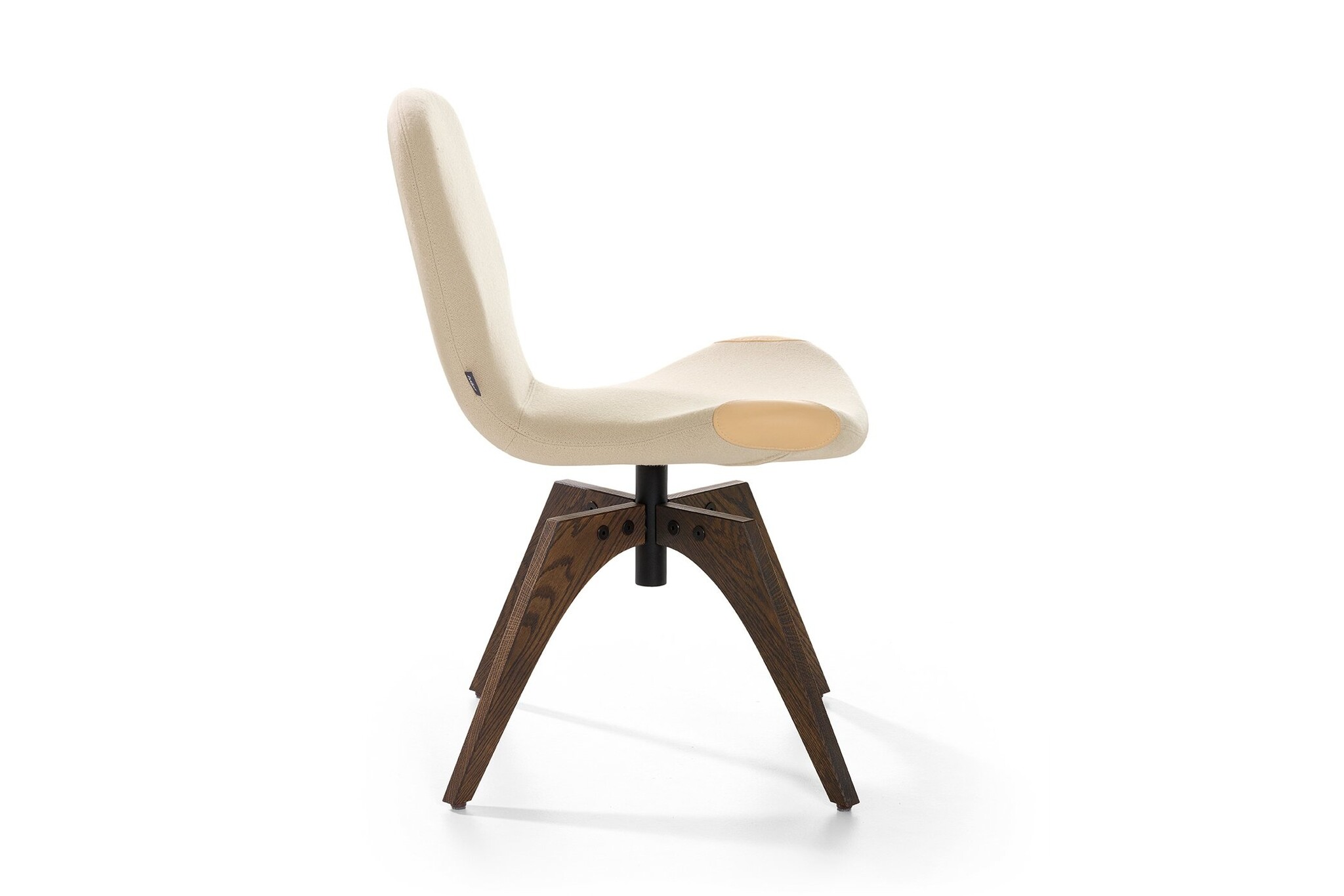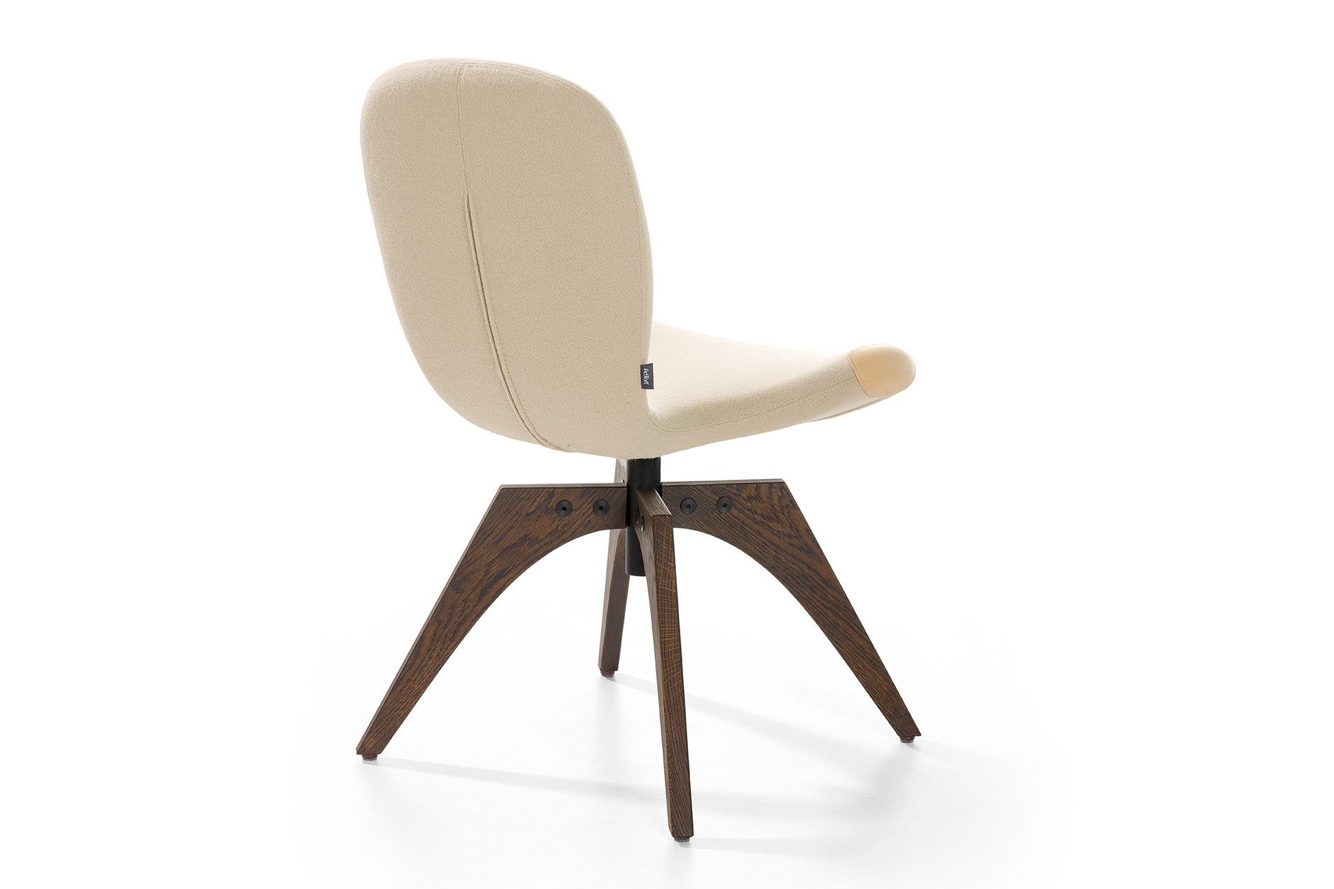 Keuze uit 3 soorten onderstellen: houten 4-poot in massief eikenhout met een olie-afwerking, houten 4-poot draaibaar in eikenhout in olie-afwerking met een retourmechanisme in poedercoat en de sledevariant standaard in een poedercoatkleur. Of is leverbaar tegen meerprijs in chroom.
