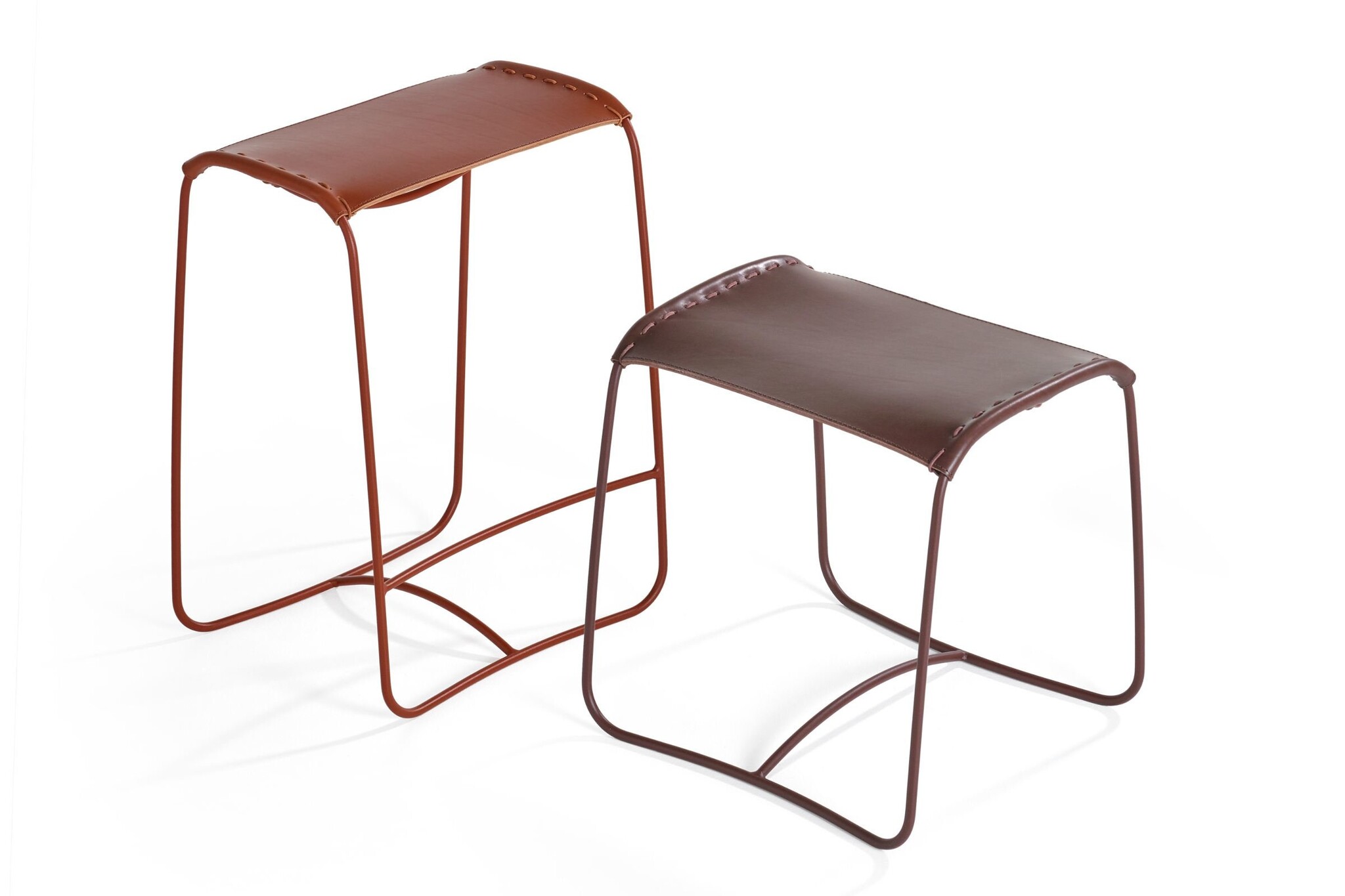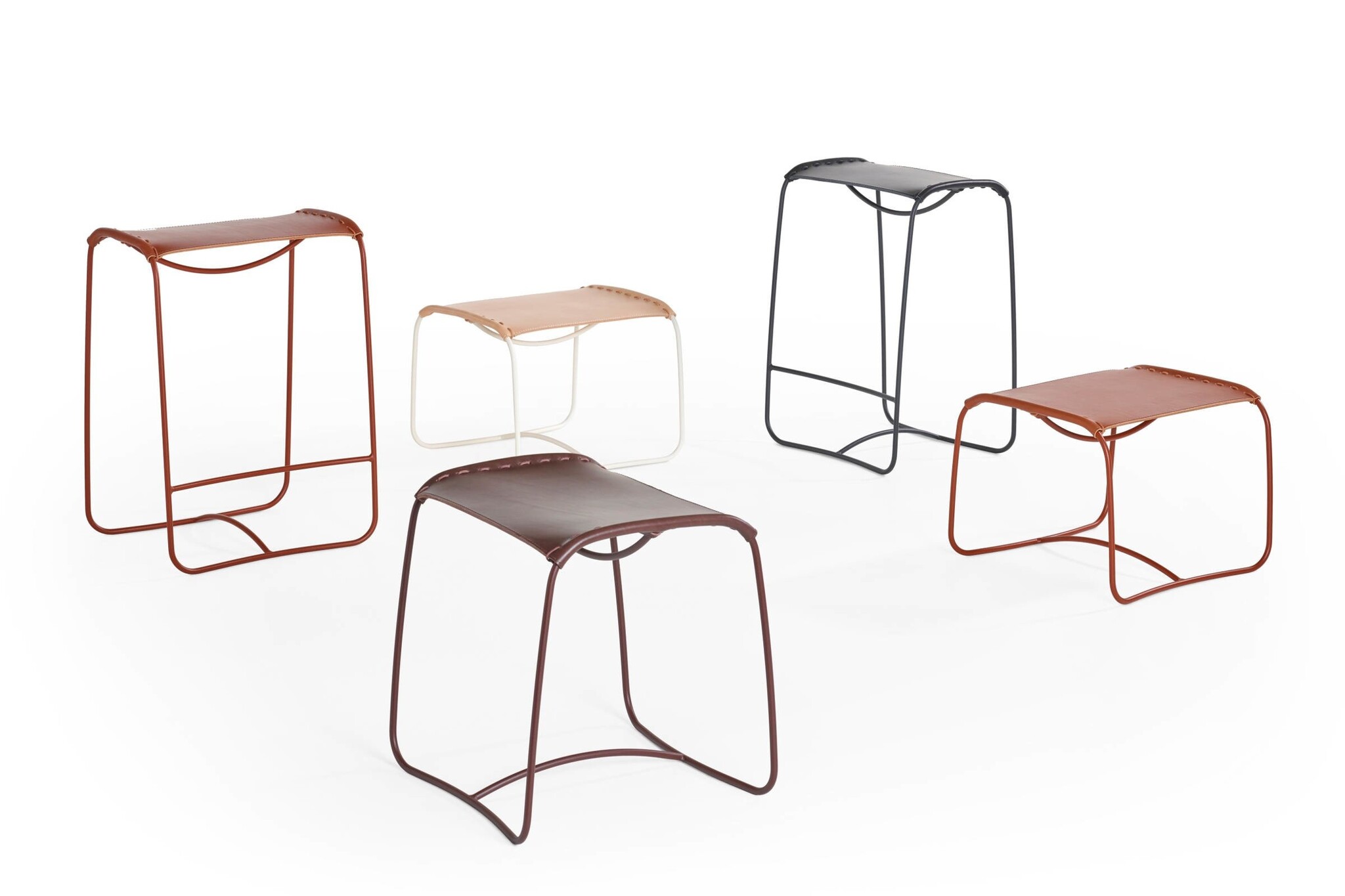 De Perching familie van Artifort bestaat uit drie stoelen: een hocker (hoogte 39 cm), een kruk (hoogte 49 cm) en een hoge kruk | barkruk (hoogte 69 of 84 cm). De zitelementen hebben een stalen gepoedercoat frame, de zitting is bekleed met zadelleder en vastgezet met lederen veters. De Artifort Perching is verkrijgbaar in vier vaste kleurcombinaties van lederen zittingen en onderstel.