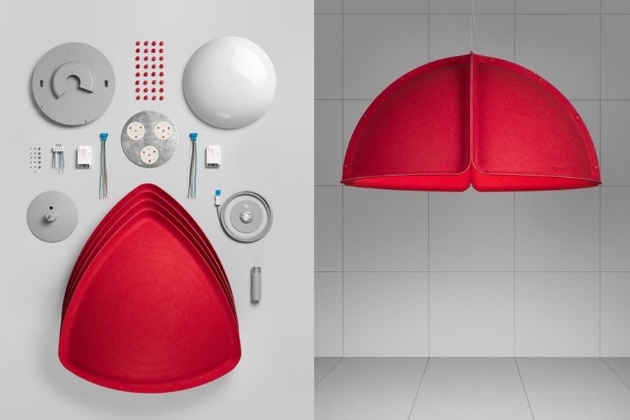 De Ateljé Lyktan Hood is een stijlvol vormgegeven modulaire hanglamp met akoestische eigenschappen. De Hood is een uitstekende oplossing voor een lichtbron en een geluidsdemper in één. Naast deze eigenaardige keuze van vormgeving, gelijkend op een hoed, maakt de materiaalkeuze van polyester vilt deze modulaire Ateljé Lyktan hanglamp van Scandinavisch design minstens zo uniek en is het een blikvanger voor ieder interieur. Kenmerken van Ateljé Lyktan Hood hanglamp