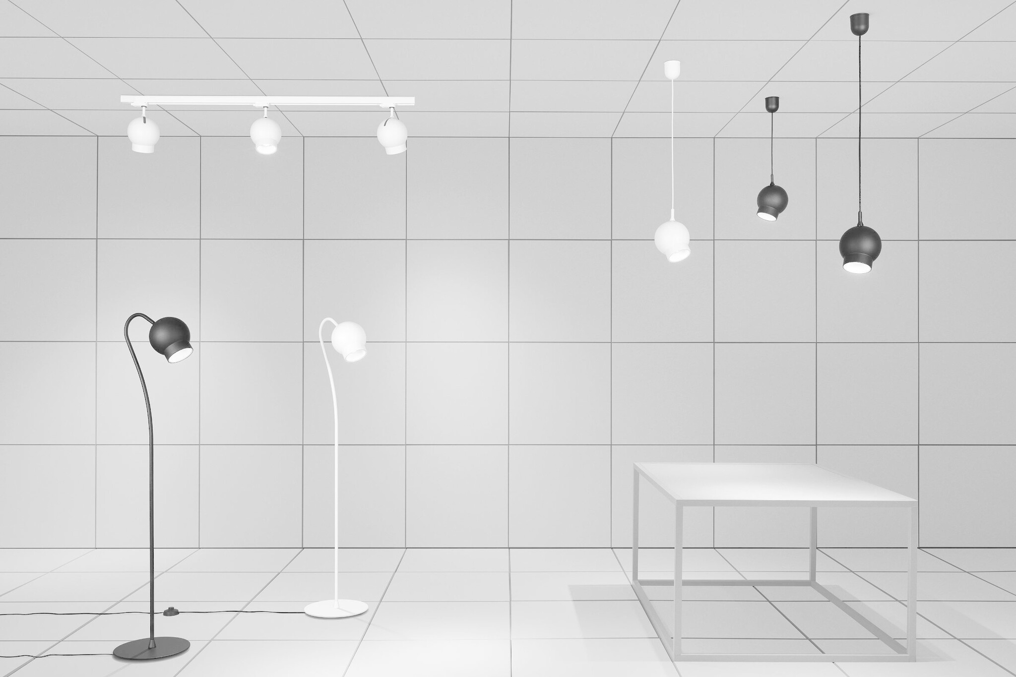 Uitvoeringen: vloerlamp, hanglamp of plafondspot
