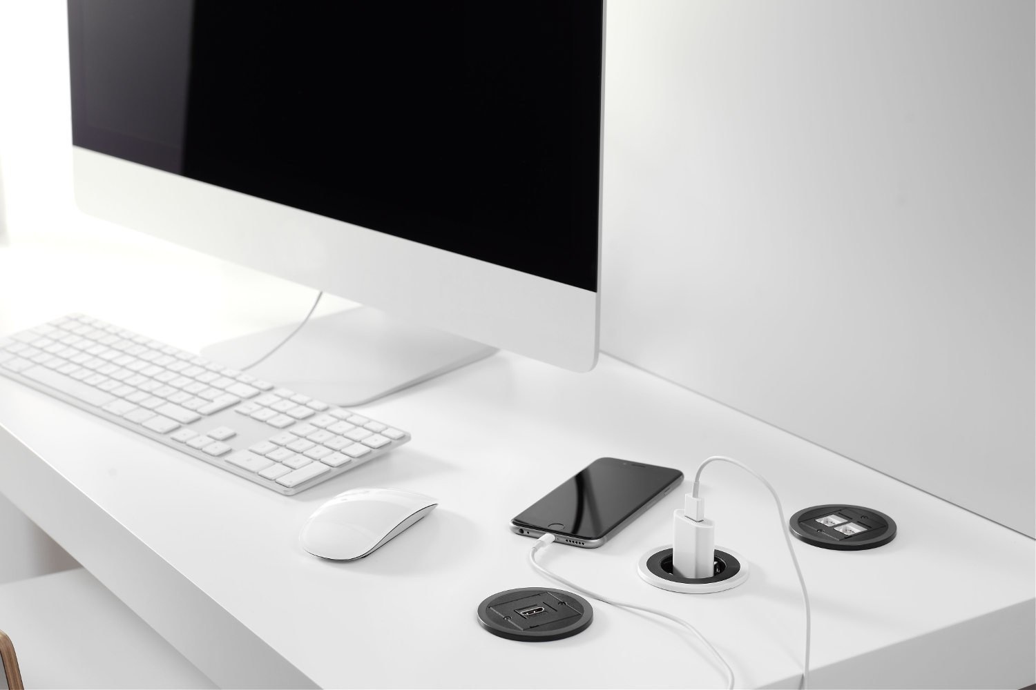 De Bachmann Pix is een collectie van stijlvolle ronde stopcontacten die op veel verschillende manieren ingezet kunnen worden - in de keuken, op kantoor, publieke ruimte of thuis. De decoratieve ringen zijn verkrijgbaar in verschillende kleuren en kunnen gemakkelijk verwisseld worden. Een ingenieuze draaicover, die het stopcontact beschermt tegen stof en vuil, is optioneel verkrijgbaar. Met zijn ronde, platte vorm, minimalistische uiterlijk en kleine diameter van 55 mm. past de Pix overal waar u hem nodig heeft.