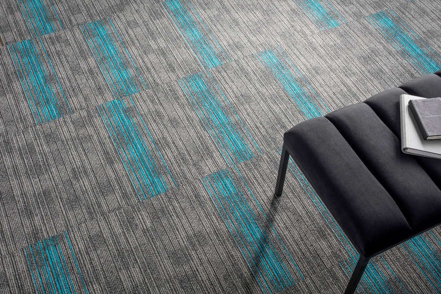 Trust Stripes vloerbedekking is vervaardigd van 100% in de massa geverfde polyamide garens. Hierdoor zijn de tapijttegels kleurvast en slijtvast. U heeft keuze uit vier stedelijke kleuren met accentkleuren als turquoise en rood.