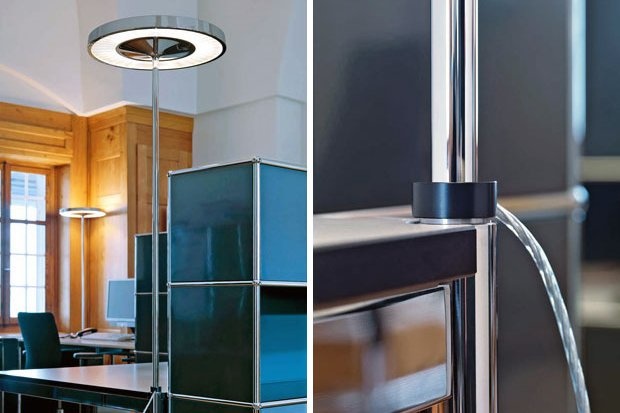 Belux Disk is een serie lampen bestaande uit een hanglamp, vloerlamp en een bureaulamp De Disk heeft een zachte verlichting en een brede lichtverdeling. De lamp is gemaakt van spuitgietaluminium staal en is te leveren in de kleur chroom, aluminium of wit.