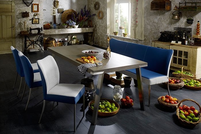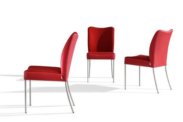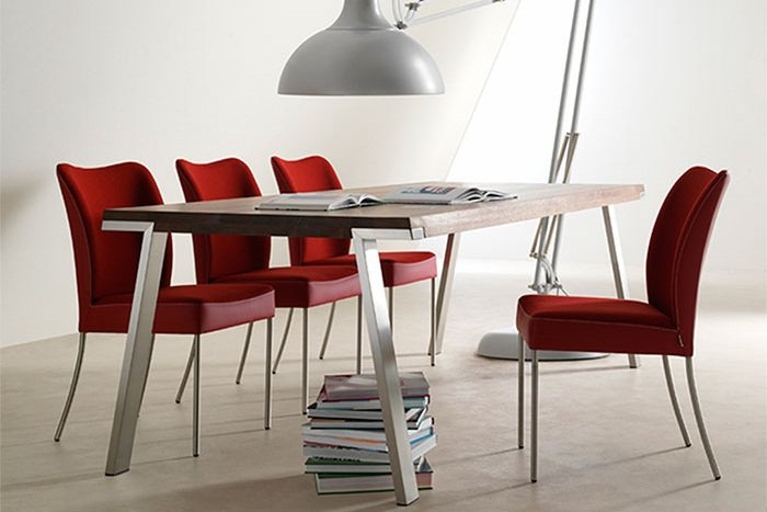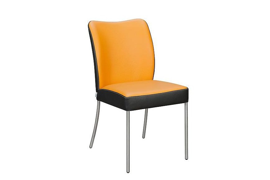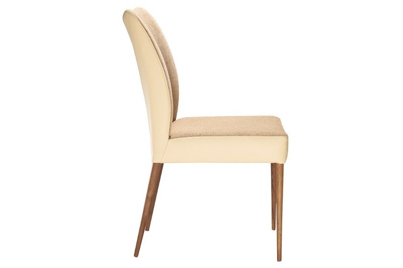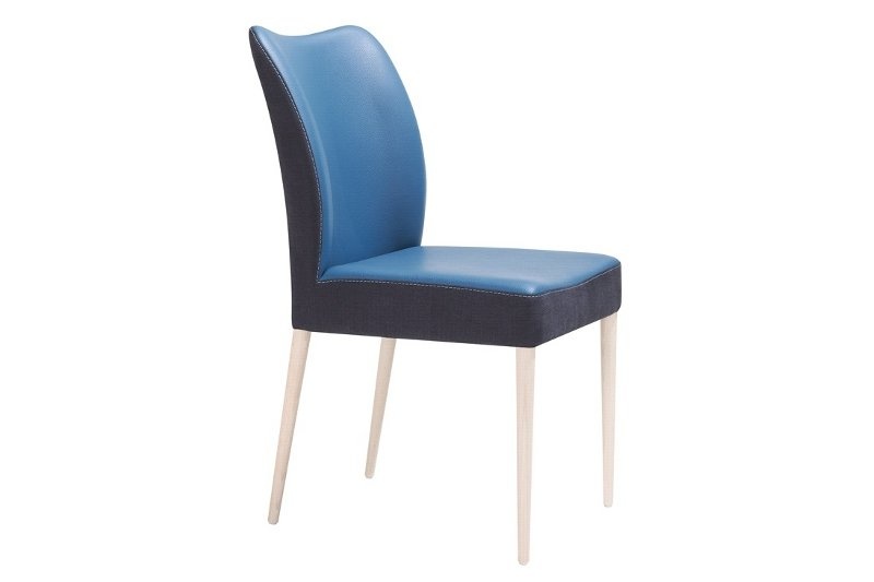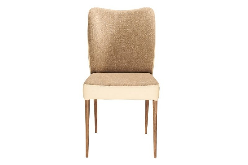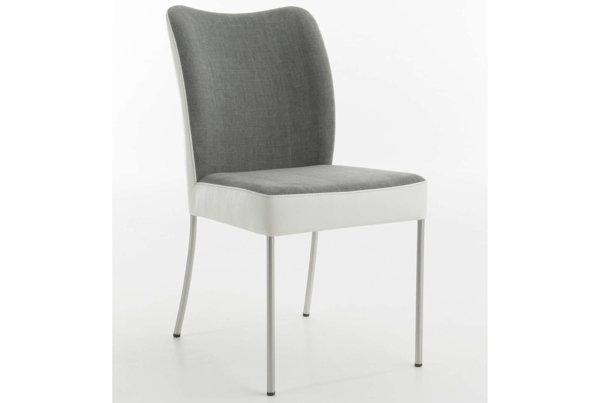 De stoel is te stofferen in twee kleuren of een trendy leer-stofcombinatie.