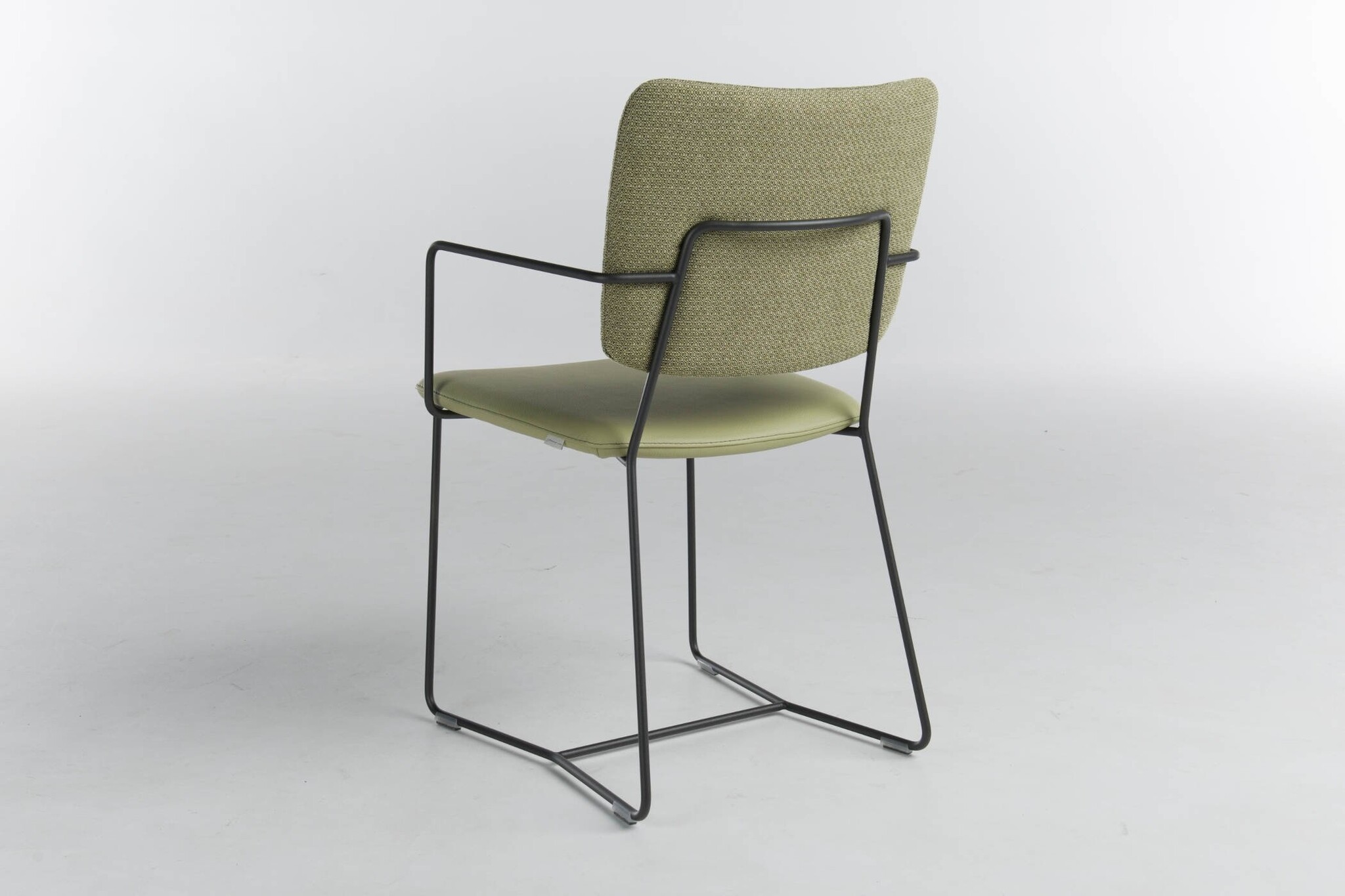 De stoel is leverbaar met of zonder armleggers en leverbaar in verschillende kleuren.