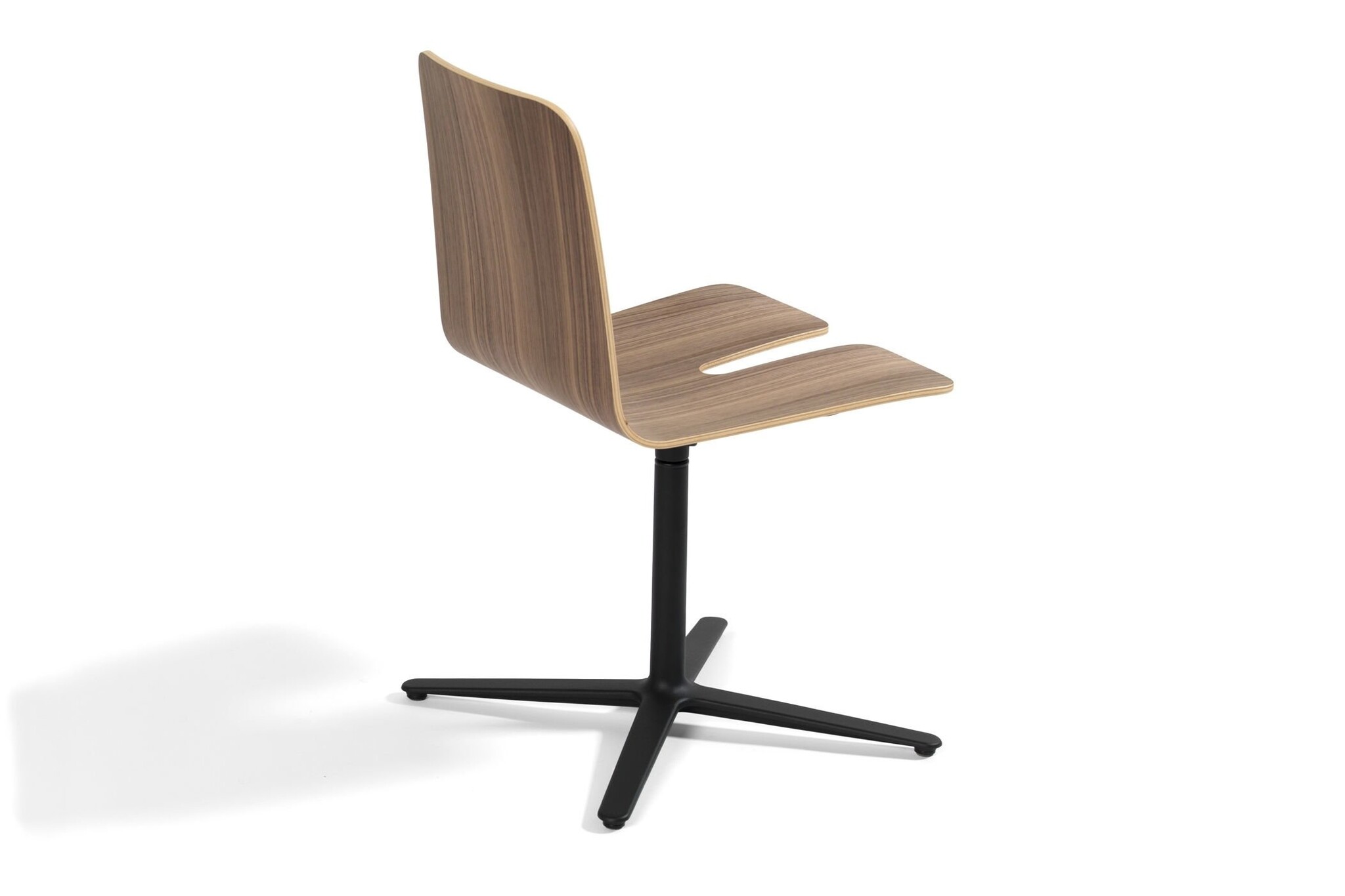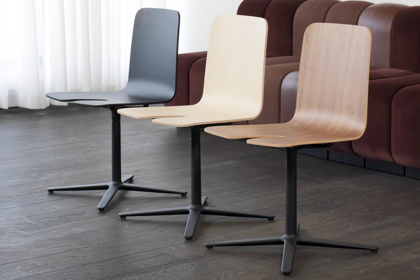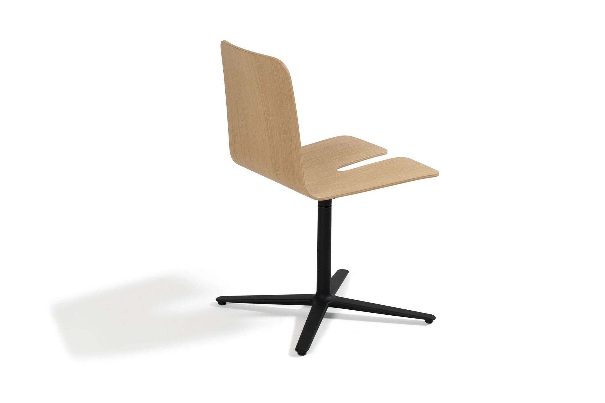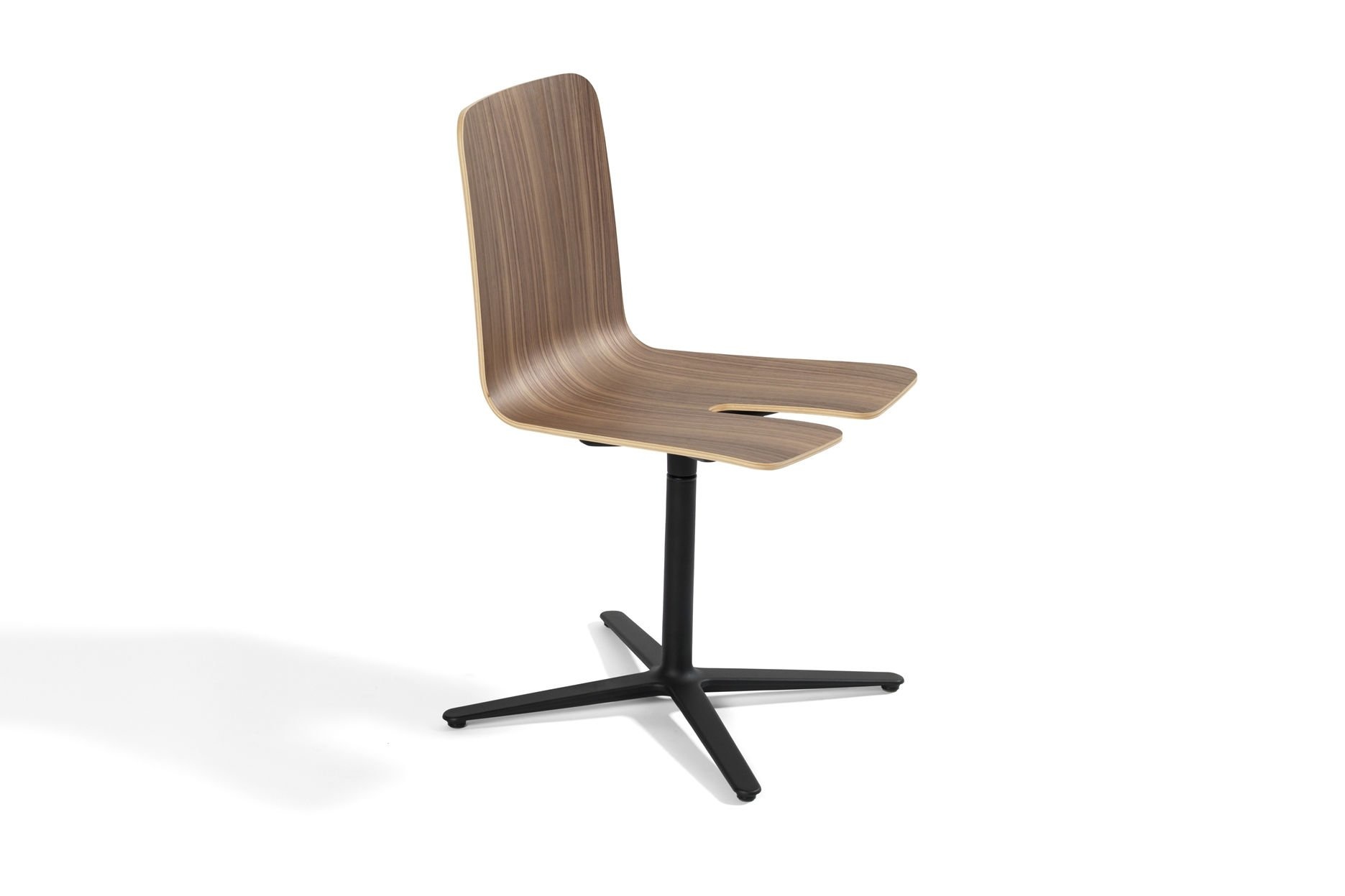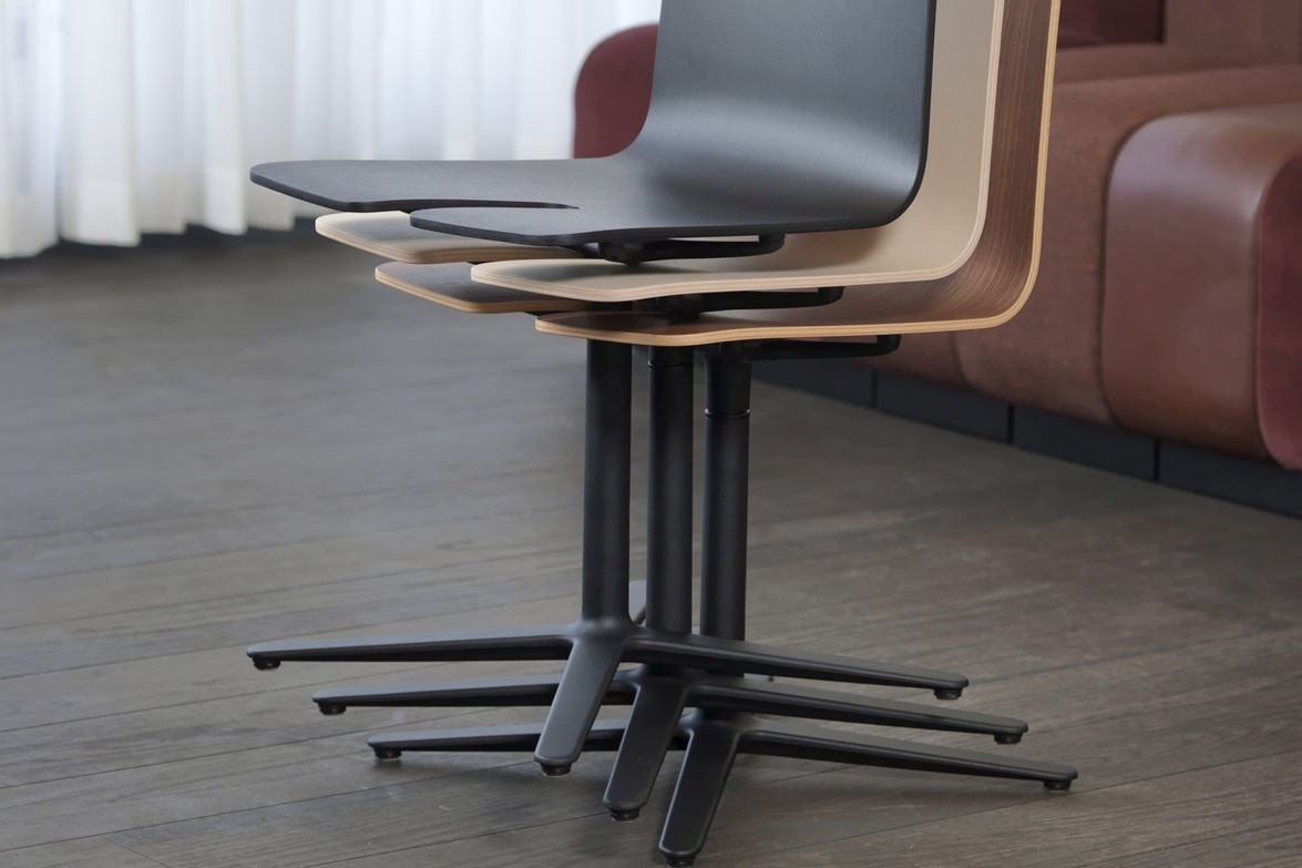 Stapelbare stoelen zijn zeer praktisch, terwijl stoelen met een kruis of stervoet als verfijnder worden beschouwd. We combineerden de twee werelden door een stapelbare basisstoel te maken. De oplossing is een kleine aanpassing van de houten zitting. Zoals de naam "Gap Chair" suggereert, maakt een uitsparing in de stoel plaats voor de kolompoot van de volgende stoel.