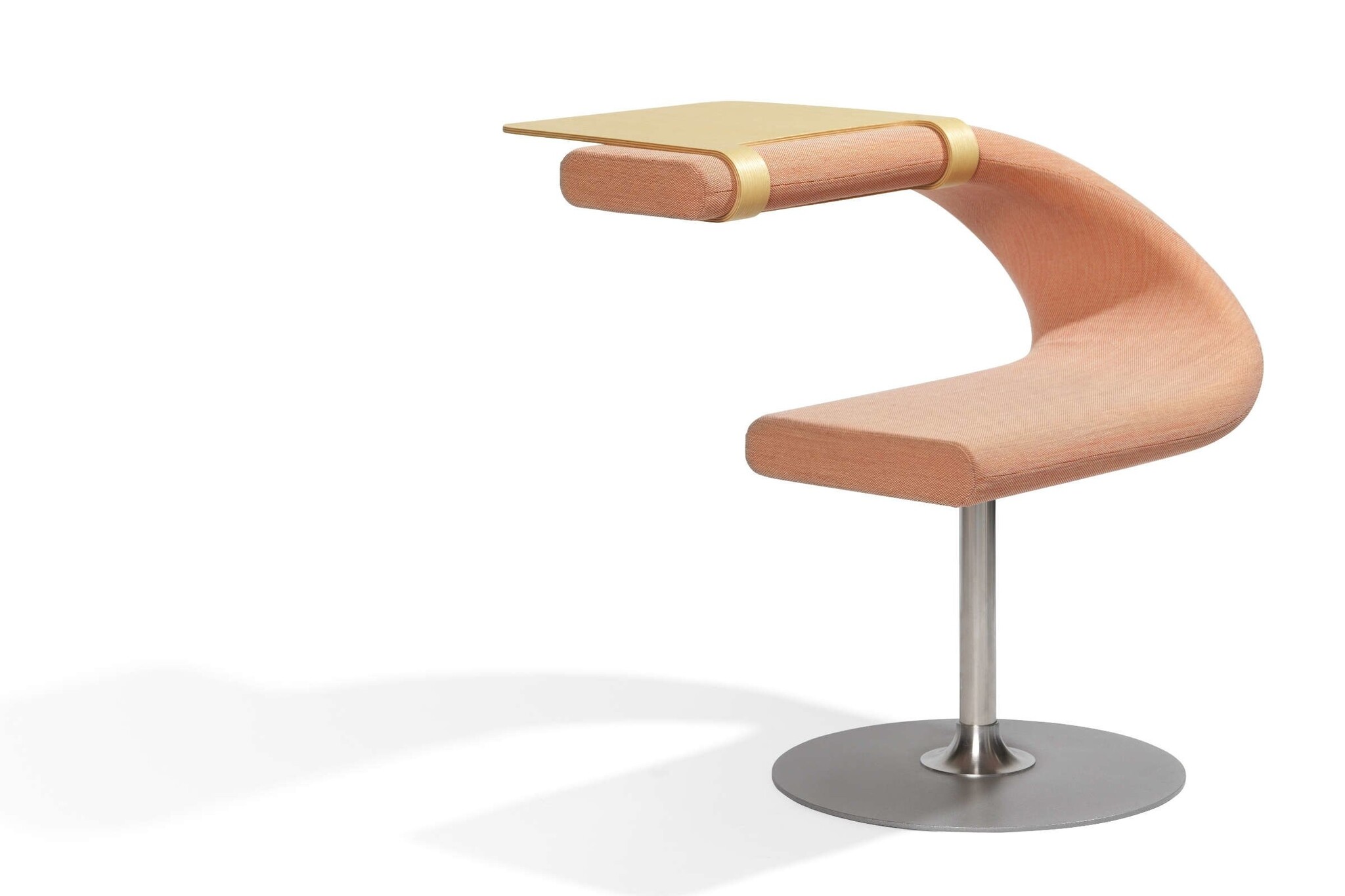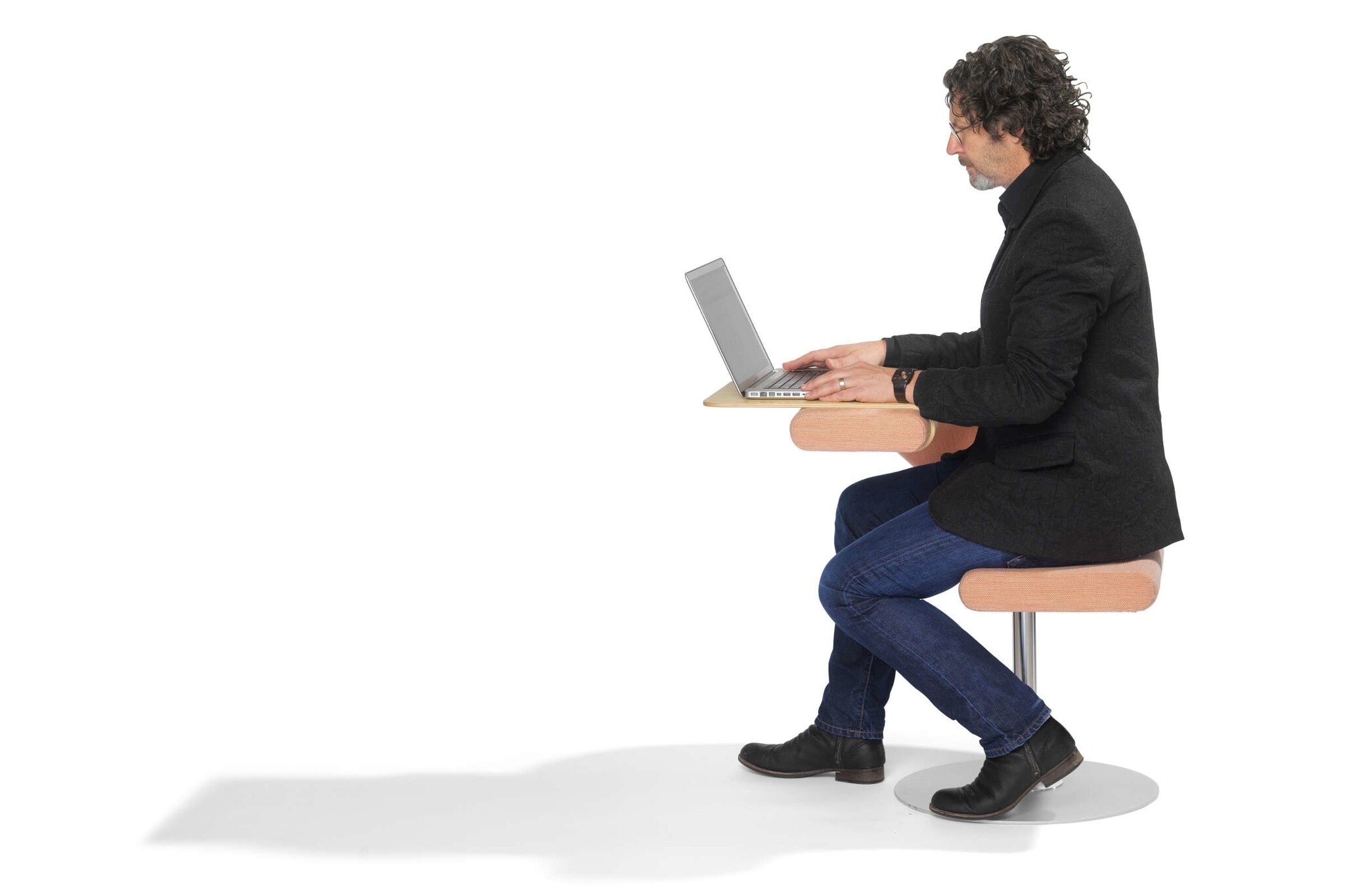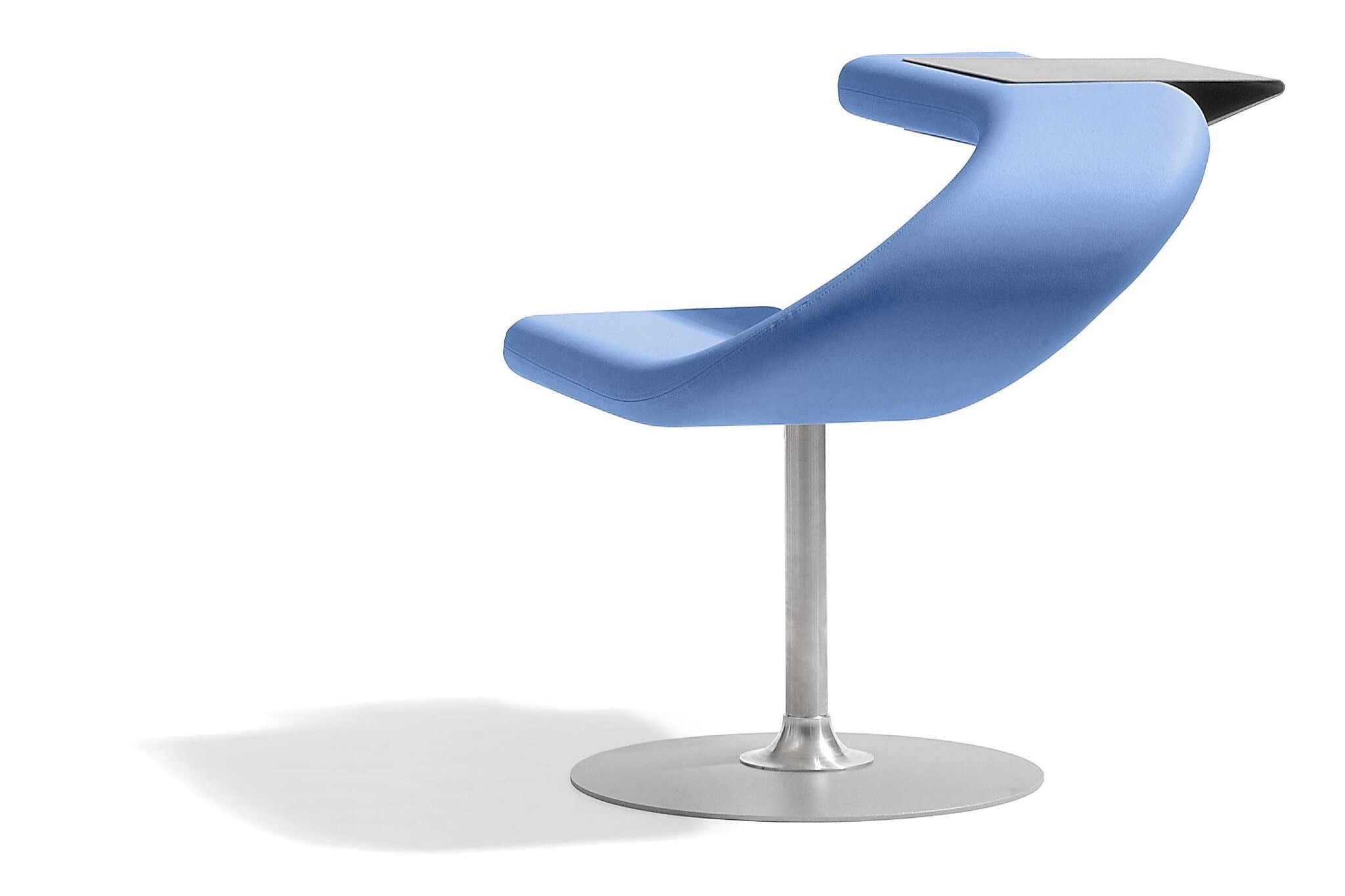 Blå Station Innovation C is een multifunctionele draaistoel. In de Innovation C kan je zitten zoals je zelf wilt, er is een voorkant of achterkant, en de rugleuning kan ook als tafel dienst doen. Met je laptop op de extra tafel kan de stoel ook als werkplek worden gebruikt. De Innovation C is uitermate geschikt voor plaatsing in wachtkamers, luchthavens, bibliotheken, scholen en musea. Materialen: Voet met roestvrijstaal pilaar op een zilverkleurig gelakte voetplaat (rvs optioneel). Binnenwerk hout en staal. Zitting, leuning en tafel uit polyurethaan schuim, bekleed met stof of leer. Automatisch terugdraaien is een optie. Zithoogte 480 mm, afmetingen 700 x 650 x 750 mm b x d x h. Voorzien van Nordic Swan Eco-label voor diverse stoffen.