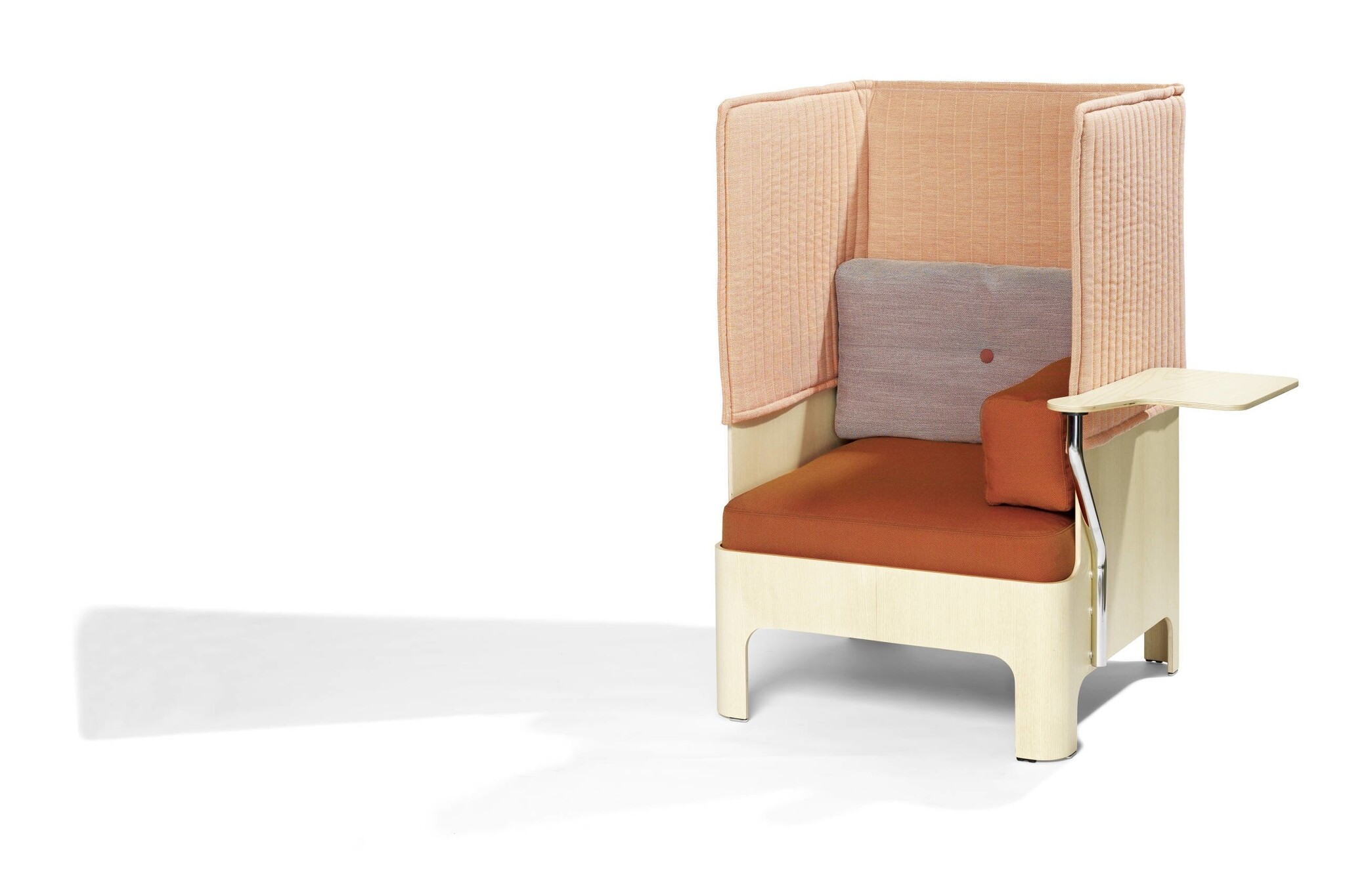 Blå Station Koja fauteuil met een beschermde essenhouten schelp. Met zijn beklede bovenzijde en gevulde kussens is de Koja de perfecte plaats of even te relaxen en je van de buitenwereld af te sluiten. Koja is ideaal voor entrees, lounges, lobbys en bibliotheken, en vele andere locaties. De Koja fauteuil is er in een lage en hoge versie, alsmede als bank. Zithoogte 470 mm, afmetingen 770 x 740 x 830 mm b x d x h, 1210 mm hoog voor de hoge versie. Bekleding in stof of leer. Een bijpassend meubel is de Bla Station Babel salontafel.