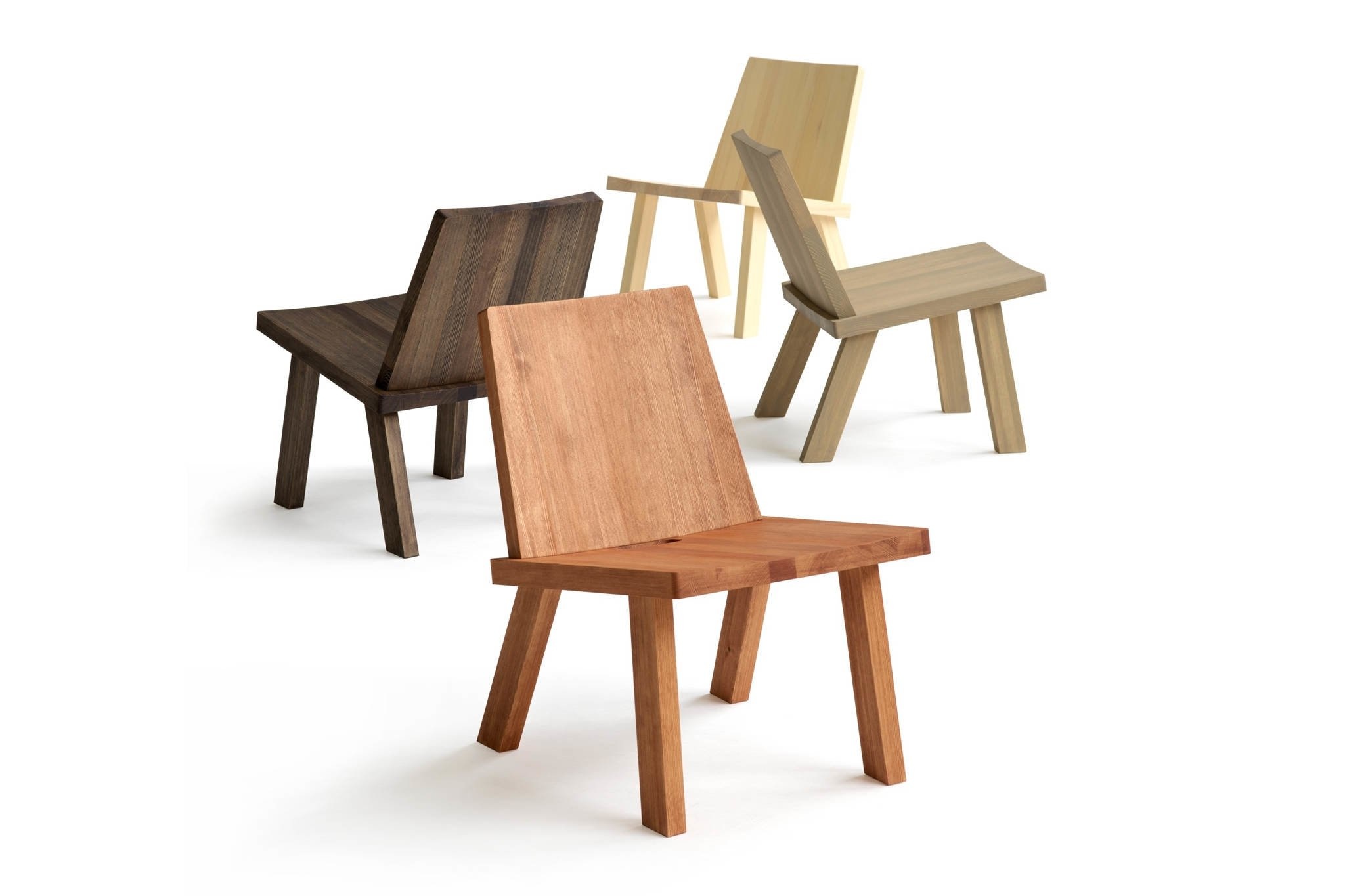 De stoel zal verkrijgbaar zijn in natuurlijke houtkleur, wit, bordeauxrood en ijzersulfaat, evenals een zwart getinte versie, waarbij de houtnerf nog duidelijk zichtbaar is.