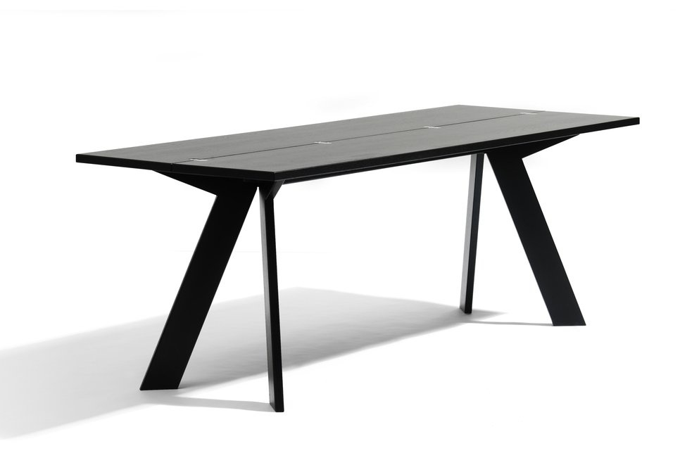 Blå Station Simsalabim is een opklapbare tafel die daardoor ook als sidetable kan worden gebruikt. Twee ingeklapte Simsalabim tafels kunnen samen een tafel vormen.