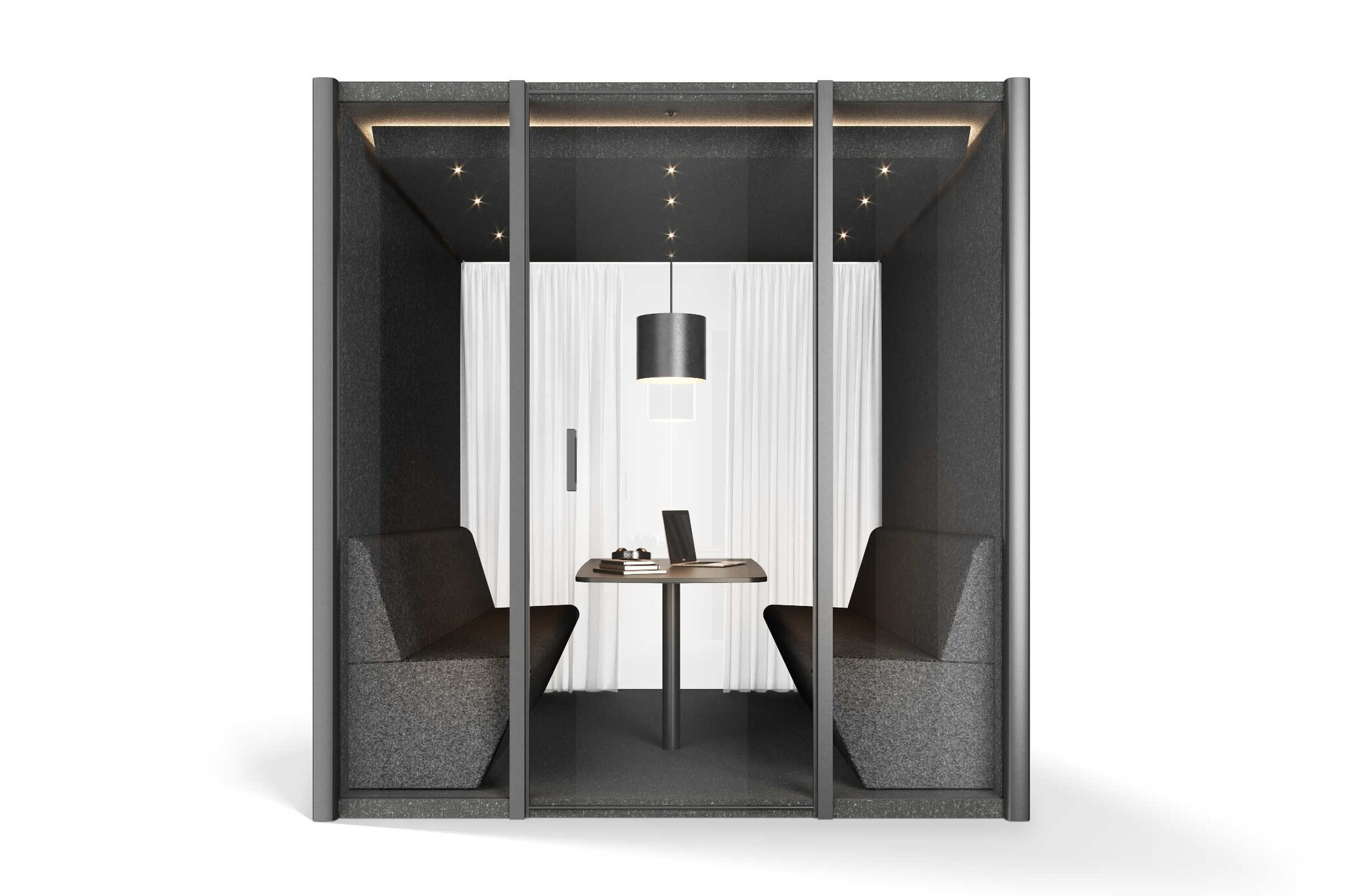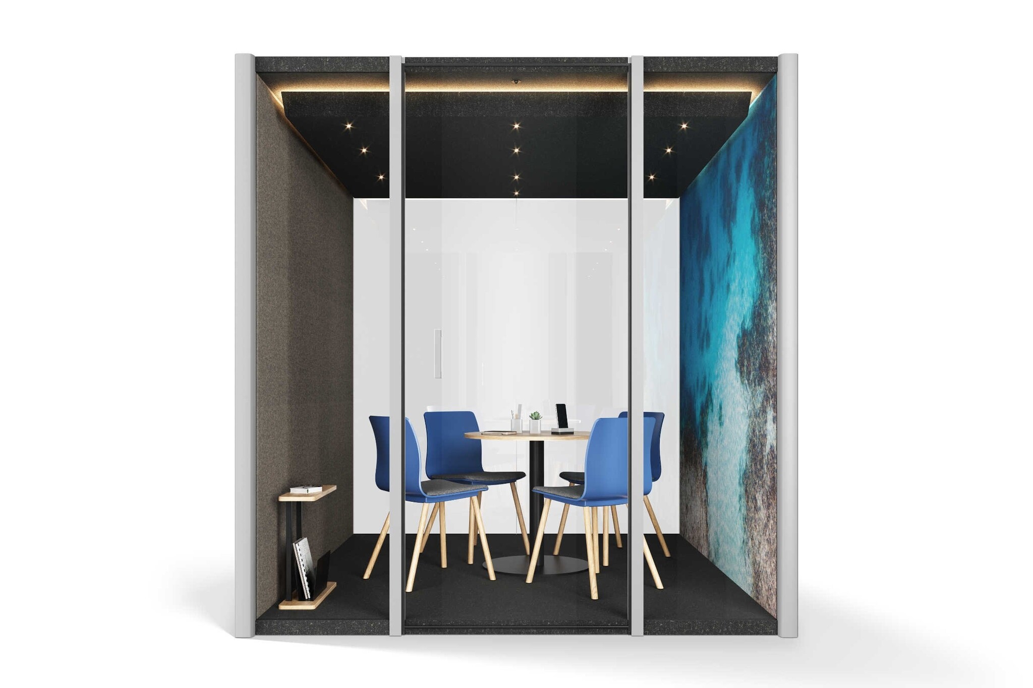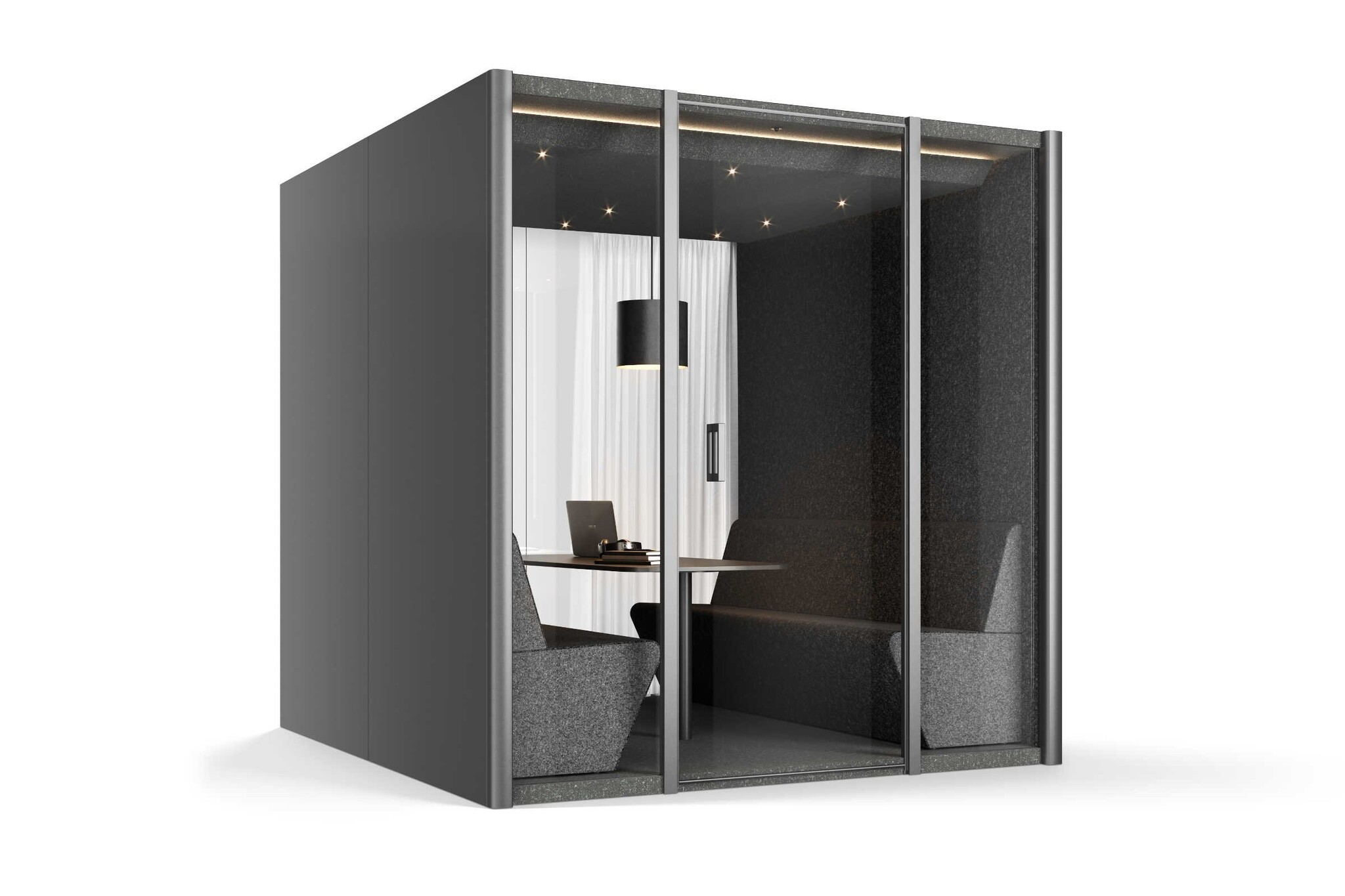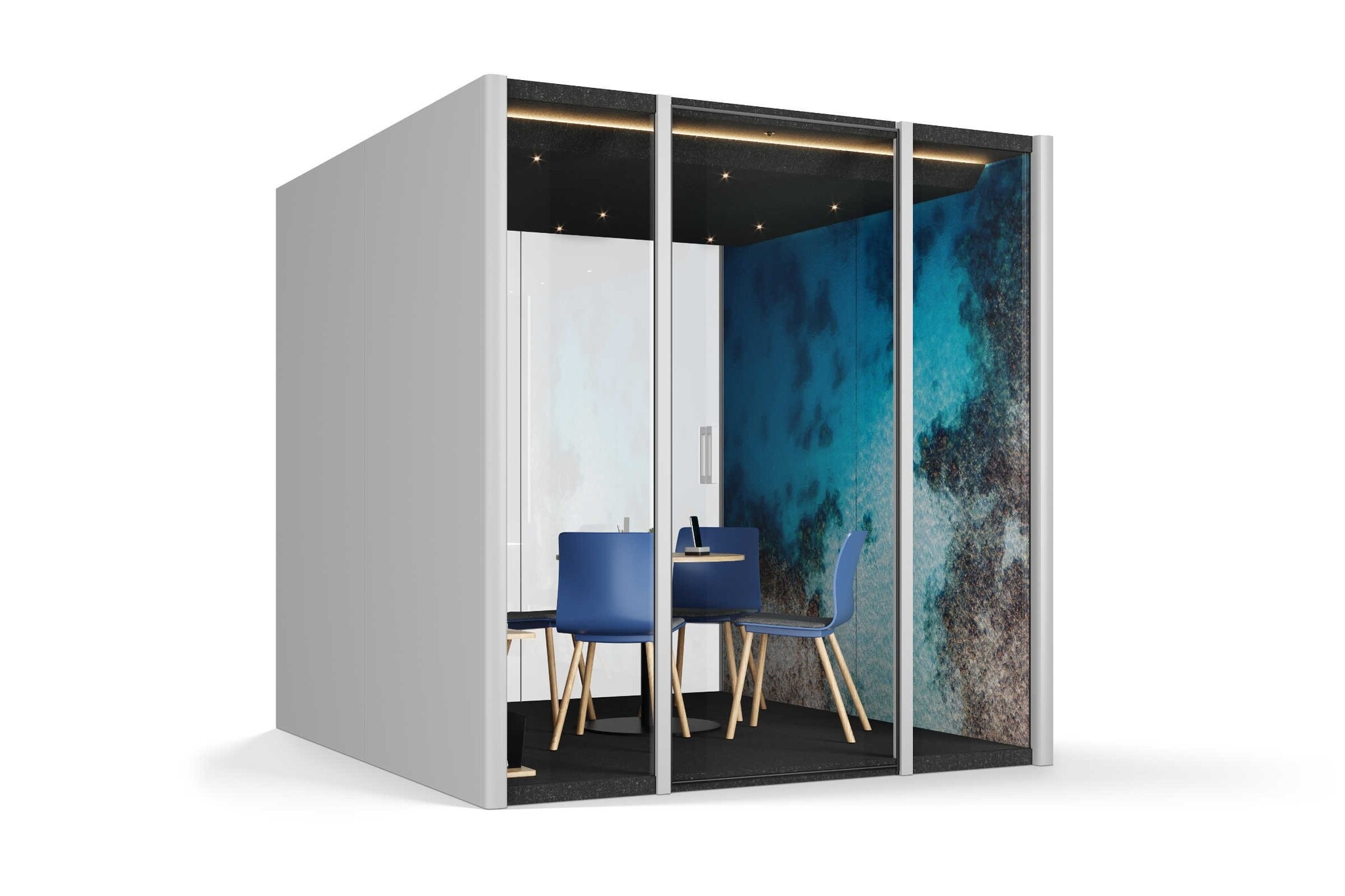 Tijdens een vergadering praat men over en weer. Dat kan storend werken voor de omgeving. Daarom is het fijn om een Bosse Collaboration Cube in uw kantoor te hebben. Hierin voorkomt u geluidsoverlast en kunt u met meerdere collega's in overleg.