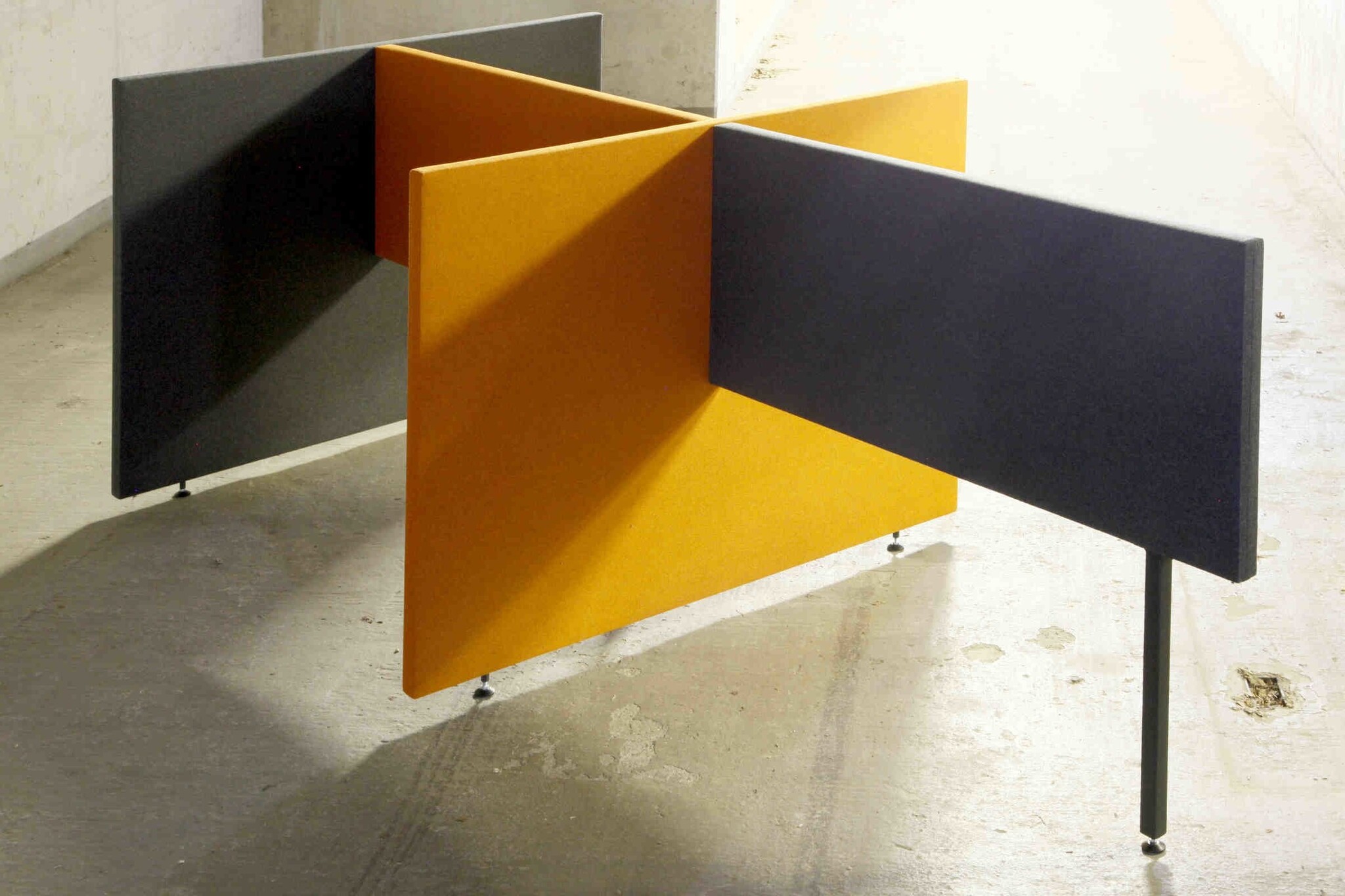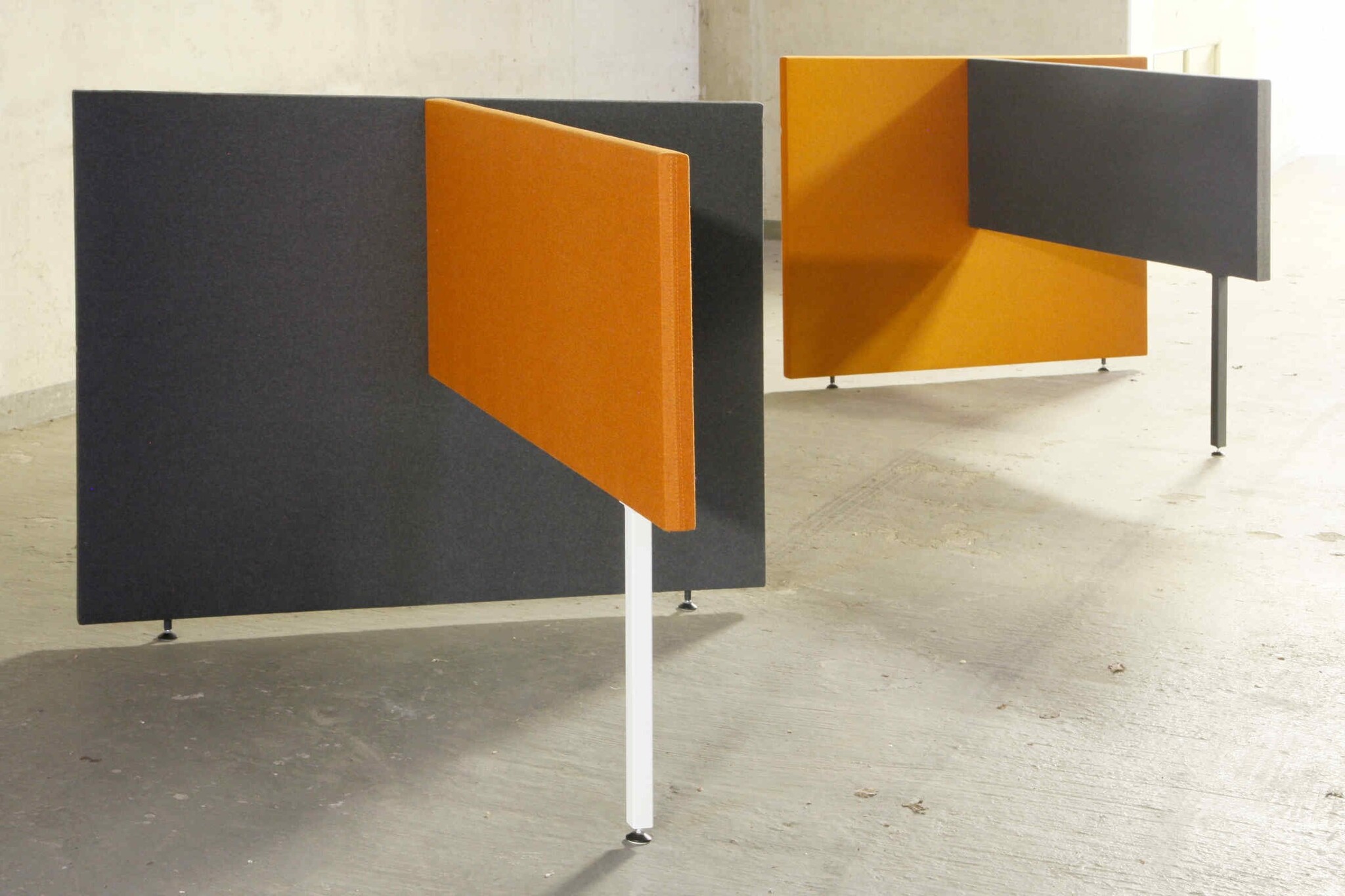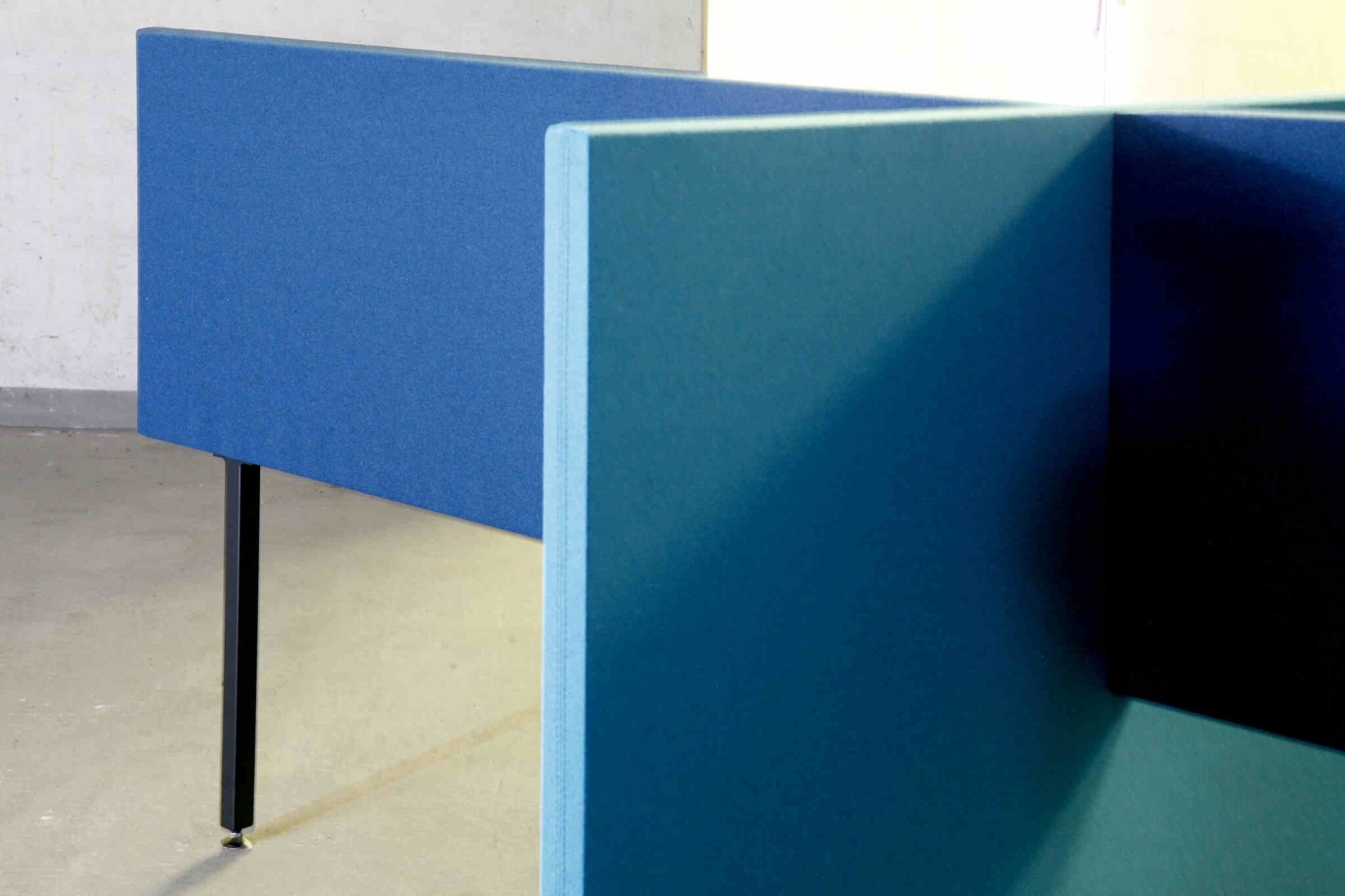 Panelen kunnen worden geplaatst op stelpootjes tussen bureaus.