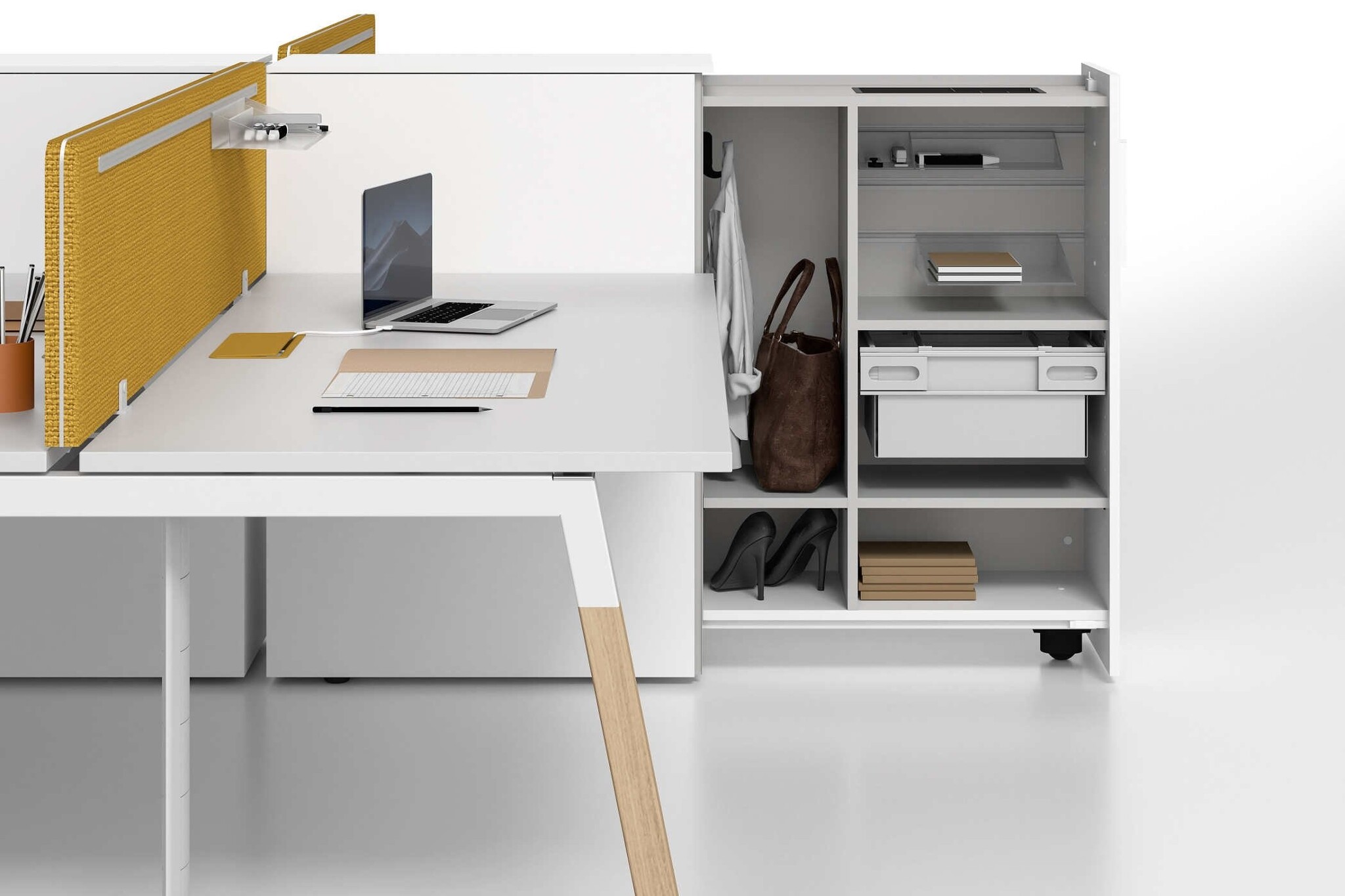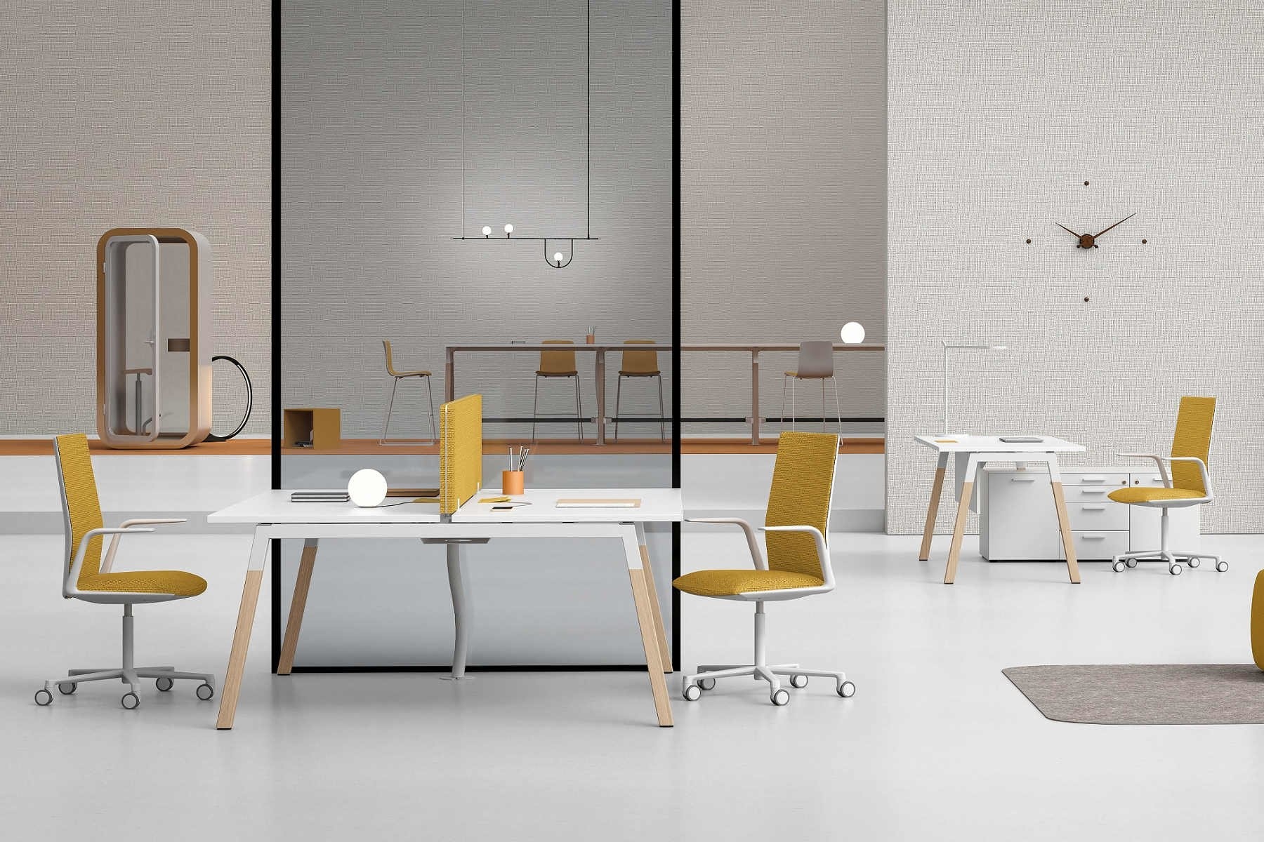 De Bralco Polare Desk is een fijn bureau dat zich aanpast aan de omgeving. Het kantoor moet volgens Bralco een omgeving zijn waar de werknemer zich thuis voelt. Niet alleen de fysieke, maar ook de mentale gezondheid is belangrijk. Met dit innovatieve meubel speelt het bedrijf hierop in. Tevens wordt zowel samen als individueel werken op een positieve manier beïnvloed. Dit bench bureau zorgt ervoor dat collega’s gemakkelijk kunnen overleggen of juist geconcentreerd kunnen werken (door er bijvoorbeeld een akoestisch scherm tussen te voegen). Meer over de Bralco Polare Desk