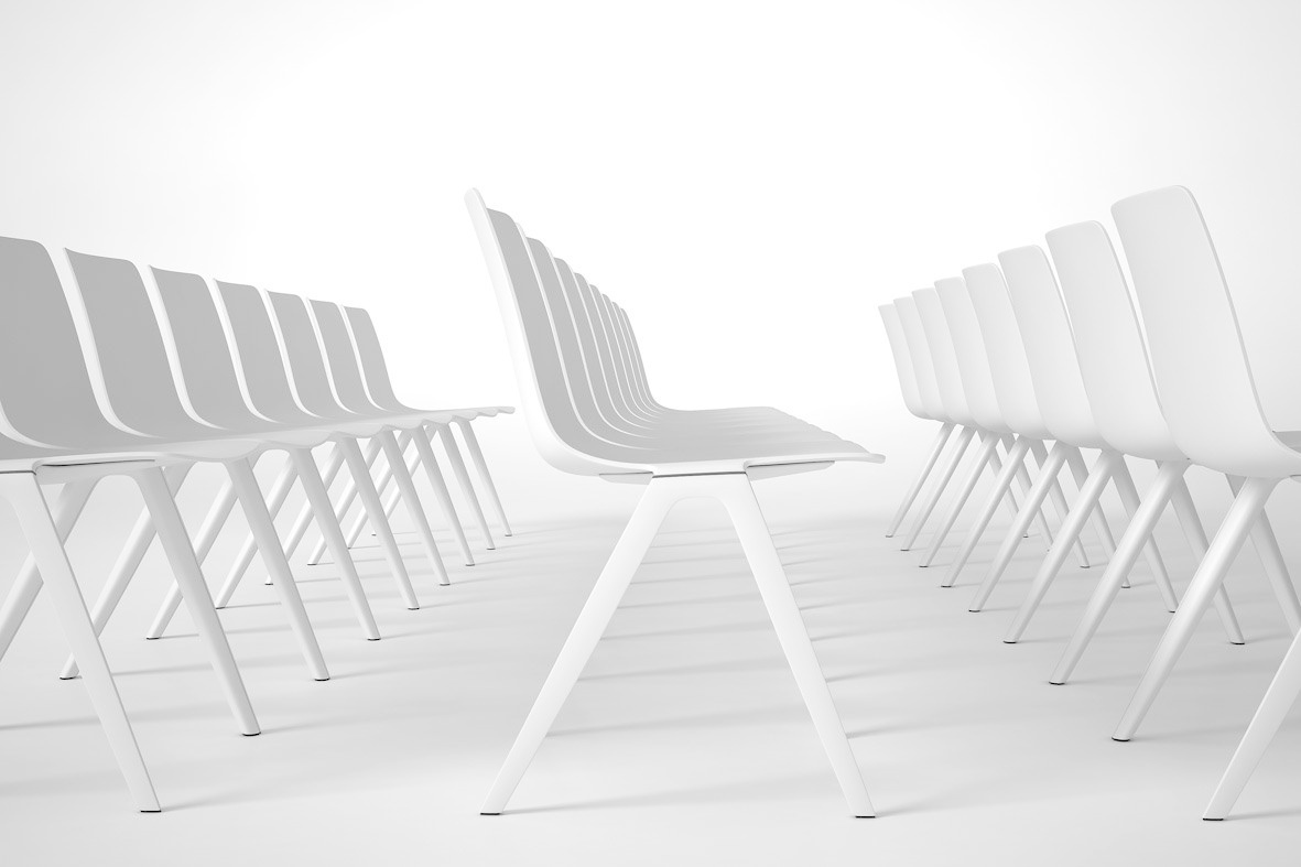 Elegant en uniek, dat zijn de wezenlijke kenmerken van het ontwerp van de A-Chair. Van de zijkant bekeken lijkt hij op de letter A, vandaar zijn naam. Essentieel onderdeel van het design zijn de slanke poten. In een rij lijken de poten twee aan twee samen te smelten, waardoor het totaalbeeld bijzonder rustig wordt. De A-Chair leidt niet af van zijn omgeving, zelfs niet als er 1000 stoelen in één ruimte staan. Dankzij het modulaire concept kunnen de kuipen en onderstellen van deze allrounder op diverse manieren worden gecombineerd; voor spannende contrasten of een harmonieuze eenheid. Het onderstel van gegoten aluminium of kunststof is te combineren met kuipen van verschillende materialen en in diverse kleuren. Nieuw en apart is bijvoorbeeld de combinatie van kunststofonderstel en gebogen houten kuip.De Brunner A-Chair is ideaal als zaalstoel bij conferenties en als vergaderstoel is hij mooi te combineren met de Brunner A-Table.
