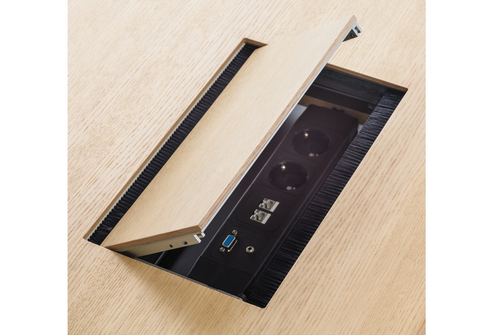 Moderne vergadertechniek vereist een hoge mate aan media-integratie. Daarom is er voor de Brunner Fina Conference tafels optioneel een doordacht kabelnetwerk verkrijgbaar. Verschillende horizontale en verticale snoergeleiders, kant en klaar en flexibel, zorgen voor orde en veiligheid in de vergaderruimte.