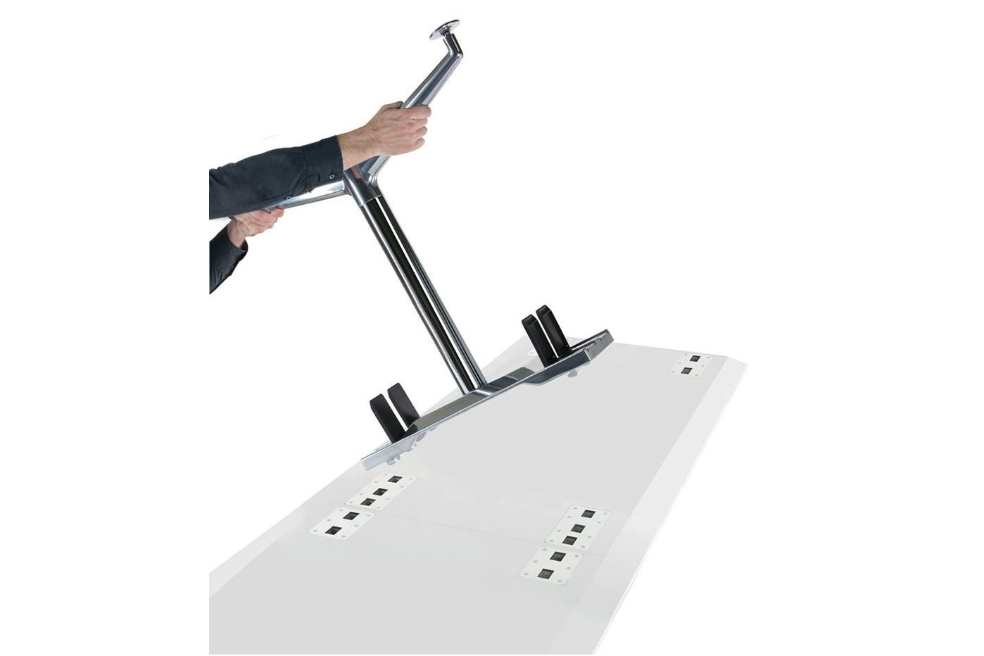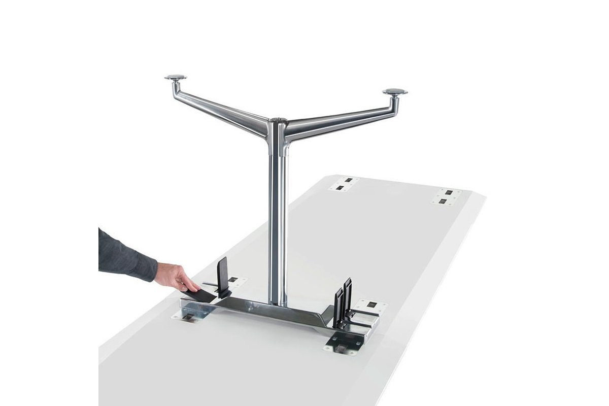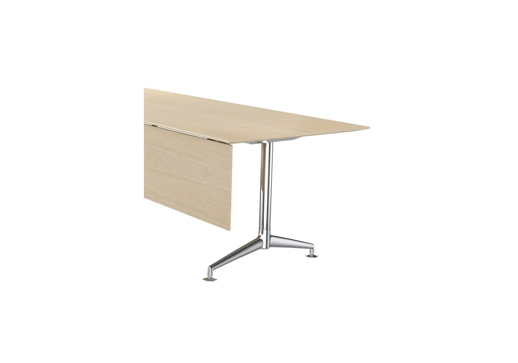 De Brunner Fina Flex conference tafel bekoort door het geraffineerde samenspel van elegante vormen, ranke lichtheid en overtuigende stabiliteit. Een geheel eigen design-statement met een groot aanpassingsvermogen aan ruimte en situatie.De vergadertafel is erg makkelijk te monteren of te demonteren door de samenstelling van de tafel. U hoeft er geen gereedschap bij te gebruiken. Het is zelfs mogelijk om in de tafel media aan te sluiten, door onzichtbare kabelgoten te monteren aan de Brunner Fina Flex Conference tafel.