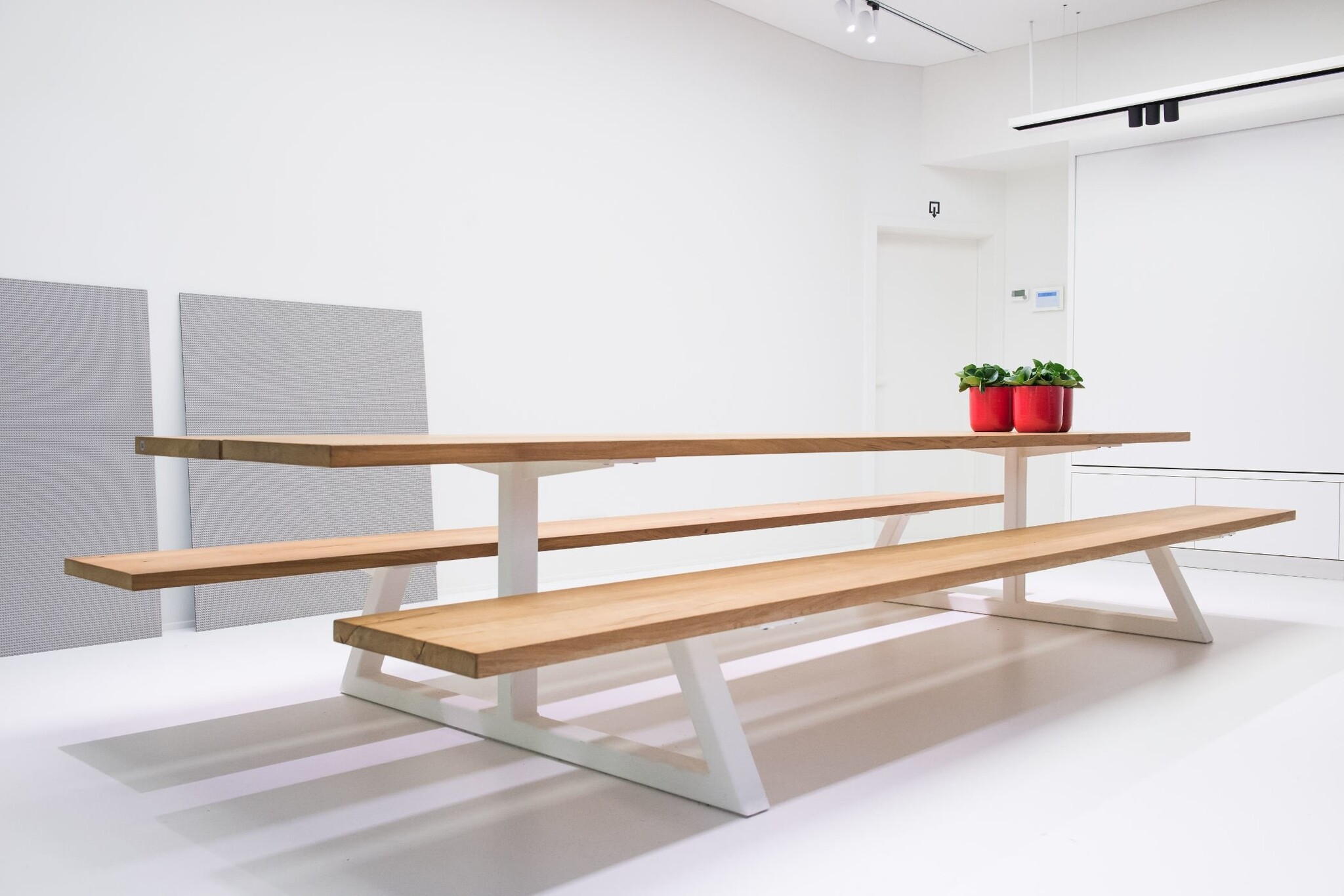 De naam zegt het eigenlijk al: de BuzziSpace BuzziBreeze is een picknicktafel, maar dan in een modern jasje. Hierbij is geprobeerd de ontspannen buiten sfeer mee te nemen tijdens het werken. Om deze vervolgens te verwerken in een veelzijdige picknicktafel om aan samen te werken. Deze prijswinnende tafel heeft alle nostalgische ontwerpkenmerken van een traditionele picknick tafel. De liefde van het buitenleven van BuzziSpace inspireerde hun ontwerpers om de BuzziBreeze te maken. Hiermee heeft BuzziSpace gehoor gegeven aan de oproep voor een outdoor werkstation die zowel binnen als buiten bruikbaar is als moderne werkplek.