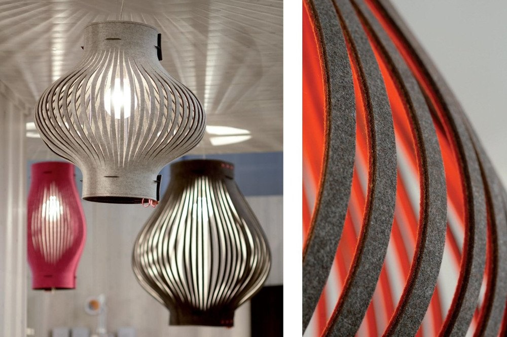 Buzzispace Buzzilight is een opvallend fenomeen, zowel aan het plafond als op de vloer. De stroken van geluidsisolerende vilt zijn bevestigd rond een stalen structuur, waardoor dit licht object verschillende vormen aan kan nemen. Of u nu kiest voor opvallende fuchsia of stijlvol steen grijs als kleur, de Buzzispace Buzzilight akoestische hanglamp is een trendsetter in elke ruimte. Voor verkrijgbare kleuren zie brochure. Vanwege het geluidsisolerende vilt is deze lamp ook als akoestische oplossing te gebruiken in ruimtes om het geluidsoverlast te beperken.