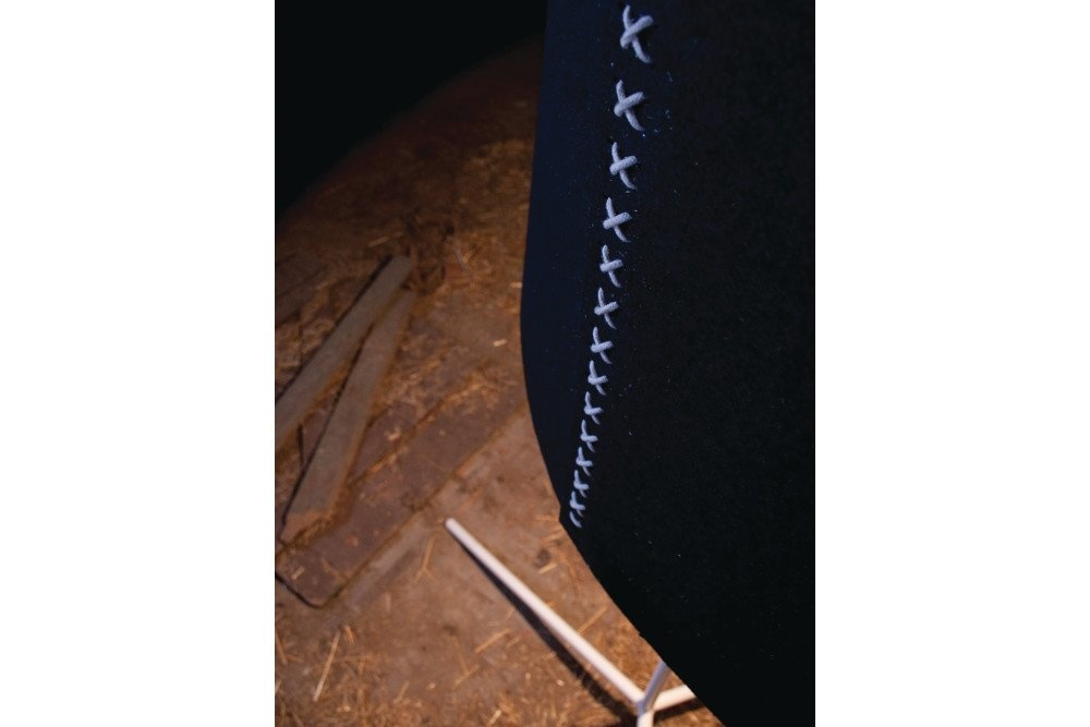 Buzzispace Buzzishade geluidsabsorberende verlichting. Buzzishade lampen zijn leverbaar in een XL en S variant. De lamp Buzzishade XL vormt een contrast tussen de elegante basis en de grote vilten lampenkap die lijkt te zweven in de lucht. De verstelbare lamp creëert een intieme ruimte en zorgt voor een aangename licht verspreiding. Het frame van de Buzzishade bestaat uit berkentriplex en wordt ondersteund door een dunne metalen basis. Het synthetische vilt kan vervangen worden door fineer of een plexiglas afdekking voor eventueel buitengebruik. De veters, waarmee de zijkanten zijn afgewerkt, zijn verkrijgbaar in de kleuren zwart en wit. De Buzzishade S is het kleine zusje van de XL.Buzzispace Buzzishade afmetingen: