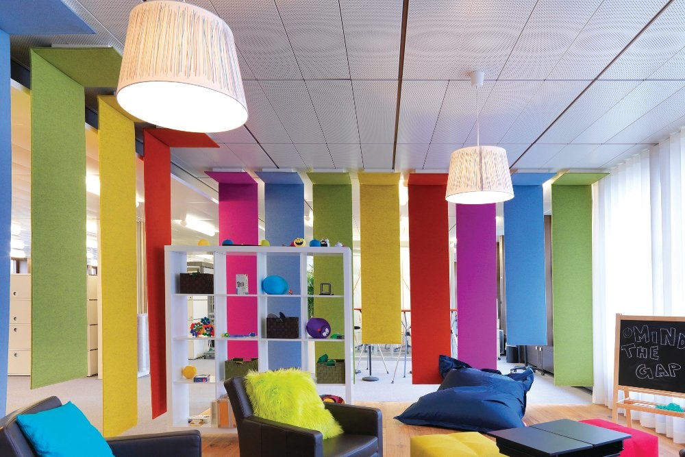 BuzziSpace BuzziWings zijn ontworpen voor de akoestiek in grote ruimtes. De BuzziWings zijn goede akoestische oplossingen, maar geven ook een subtiele verlichten door de geïntegreerde lichtbron. De akoestische panelen worden bevestigd aan het plafond in een hoek van 90 graden. Door gebruik te maken van de BuzziWings kunt u ook vorm geven aan het licht en dit naar eigen smaak in te richten. Deze zijn verder leverbaar in verschillende kleuren.