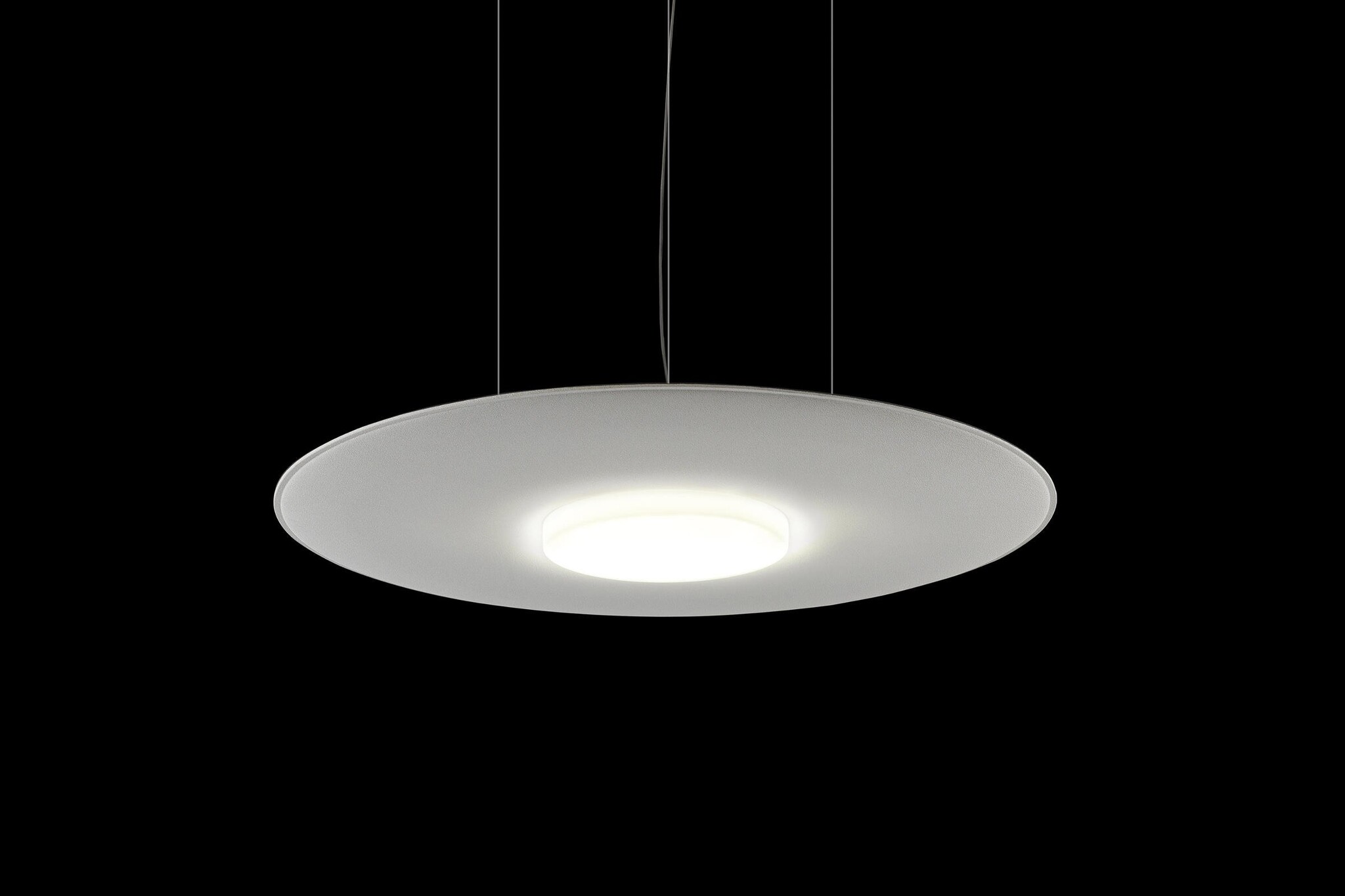 Caimi Giotto lux is een geluiddempende hanglamp dat in het midden een geverfd bliksemelement van staal bevat met LED-technologie. De lamp is bedekt met een gesatineerde polyethyleen diffuser die homogene lichtemissie mogelijk maakt. Het resultaat is een groot lichtarmatuur, dat niet een enkel decoratief element is, maar dat tegelijkertijd aan twee zintuiglijke behoeften voldoet: het biedt licht en biedt akoestisch comfort aan het kantoorinterieur. De Caimi Giotto lux maakt gebruik van de Snowsound-technologie. Het heeft een pure geometrische vorm, bestaande uit een cirkelvormig paneel met een diameter van maar liefst 119 cm, in het midden waarvan een 28W LED-licht is bedekt door een gesatineerde polyethyleen diffuser.Deze hanglampen zijn leverbaar met LED-verlichting. Hierdoor zijn deze energiezuiniger dan de andere verlichtingsbronnen. Een led kan veel meer uren licht geven dan een spaarlamp voordat hij kapotgaat.