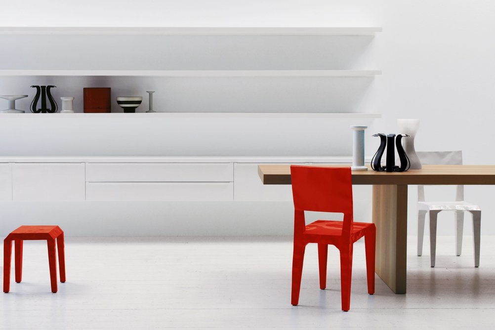 Cappellini Mr. B collectie bestaat uit stoelen, barkrukken met of zonder rugleuning, lage stoel en fauteuil uit dunne metalen plaat geïnjecteerd met polyurethaan schuim, hoogglans gelakt in wit, blauw, geel, grijs, rood and zwart. Over Cappellini Cappellini design meubilair komt van een Italiaanse fabrikant en heeft een eigentijds design. Het design meubilair van Cappellini varieert van kantoormeubelen tot zitmeubelen en van fauteuils tot accessoires. De design meubelen van Cappellini zijn nooit saai of absurd, maar levendig en vol creativiteit.