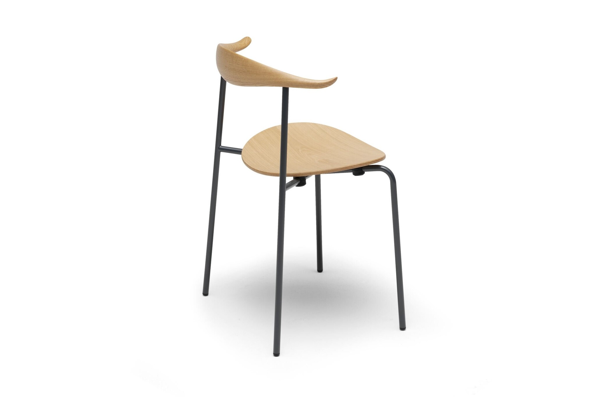 De Carl Hansen & Søn CH88 stoel is de juiste combinatie tussen het organische hout en het industriële staal. Het is daarmee een veelzijdige stoel die past in vele stijlen en omgevingen. Typerend aan de kantine- of vergaderstoel is dat de bovenkant voorzien is van een gebogen houten rugleuning voor een goede steun.