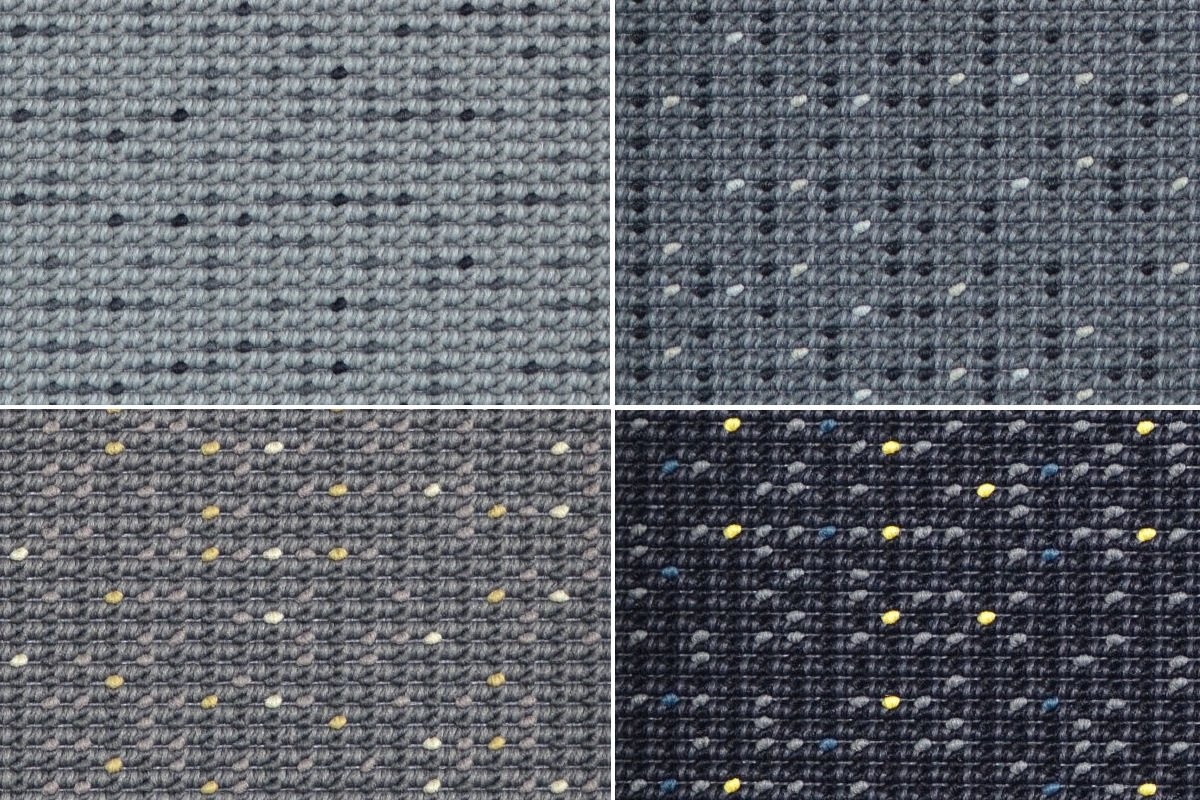 Carpet Concept Hem is een getuft lussentapijt uitgevoerd in een stippenpatroon in 34 op elkaar afgestemde kleurcombinaties. Geschikt voor zwaar en intensief projectgebruik. Kenmerken Carpet Concept tapijt Hem