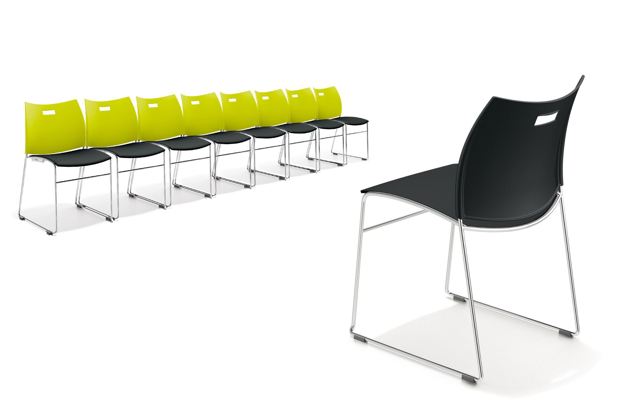 Deze stoel straalt al om al flexibiliteit uit. Zo is hij voorzien van een kunststof stapelbescherming en is de stoel stapelbaar tot maximaal 10 stuks vrijstaand. Daarentegen is de stoel te stapelen op een transportwagen tot maximaal 25 stuks die eenvoudig onder elke deurpost past. Op die manier kunt u de stoelen makkelijk verplaatsen naar de plek waar u het wilt hebben.