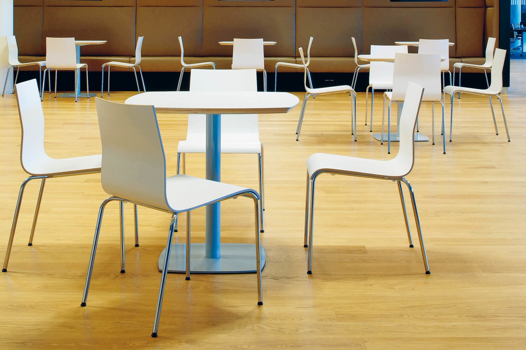 De Casala Noa stoel is een multifunctionele stoel en leverbaar in meerdere varianten. Zo kunt u uit een vierpootsmodel kiezen met of zonder armleggers. Verder maakt u een keuze uit een volledige gestoffeerde stoel, opdekstoffering op de kuip of de stoel zonder stoffering. Bovendien heeft de stoel een gelamineerde beukenhouten kuip met een melamine toplaag die in 9 kleuren verkrijgbaar is.