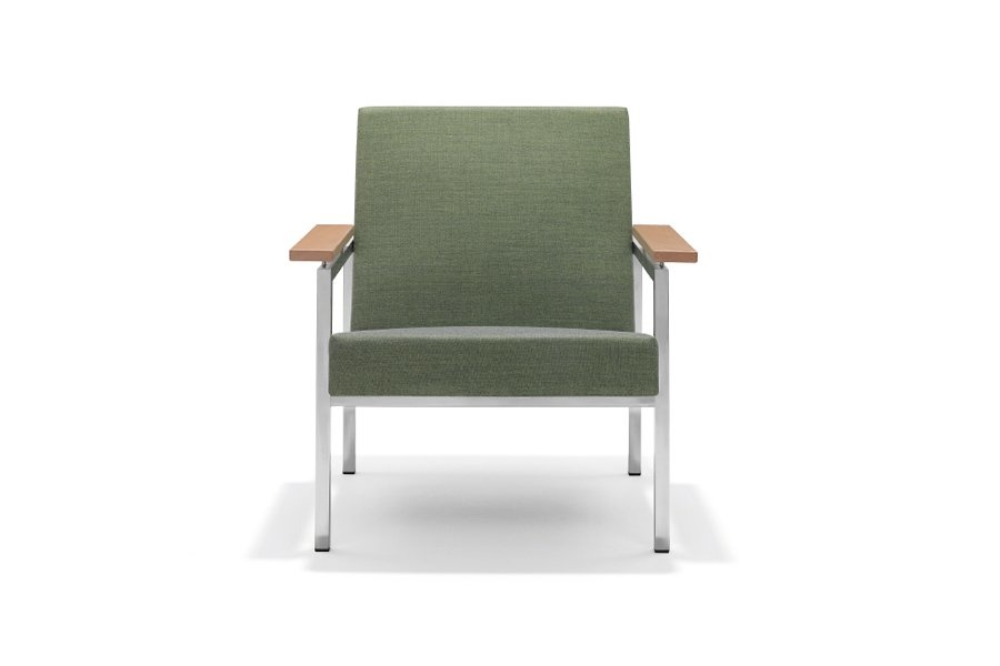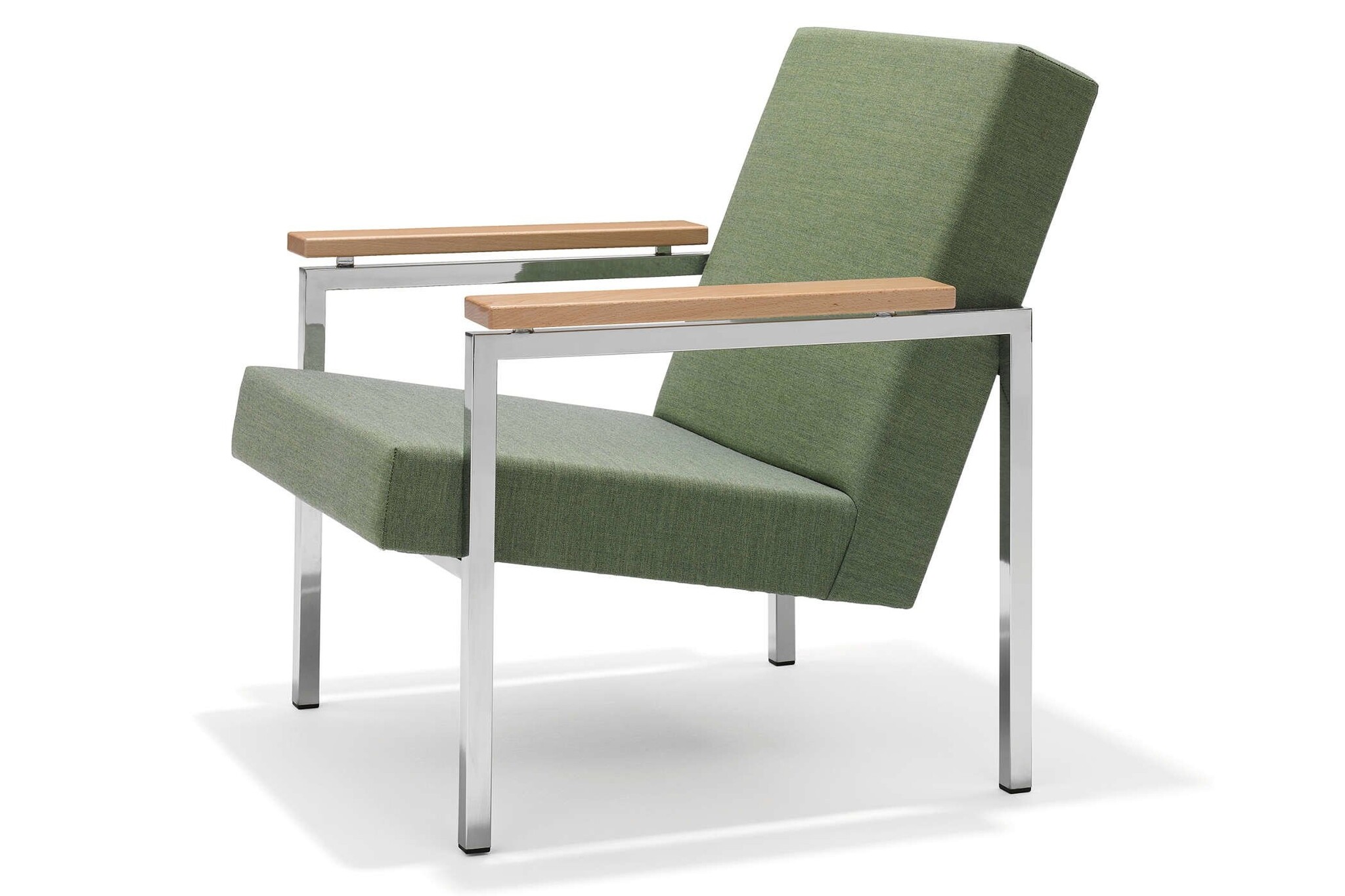 Optioneel: Armleggers in kleur gebeitst en frame in glans chroom.