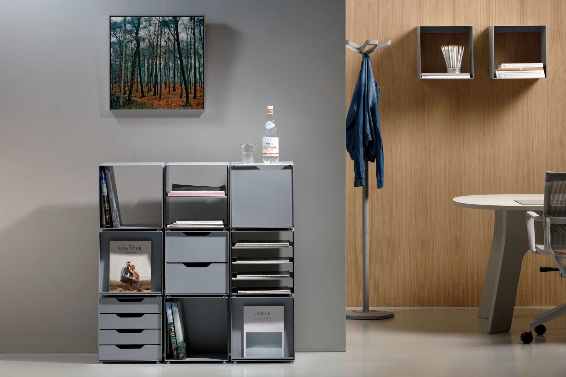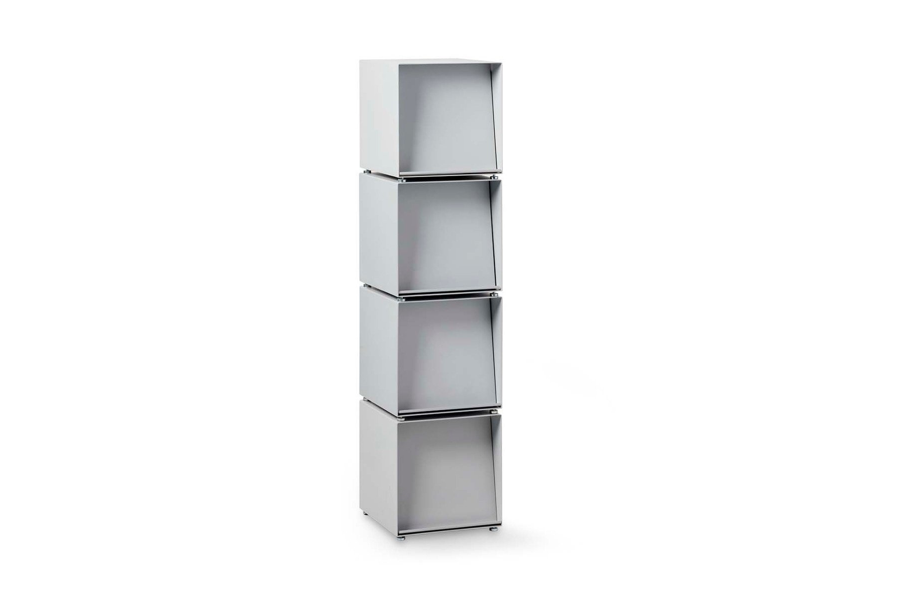 Cascando Box01 brochurebox maakt deel uit van het opbergsysteem Box01. De brochureboxen zijn eenvoudig stapelbaar en hebben magnetische voeten. Achter het inklapbare brochurepaneel is opbergruimte voor extra brochures. Combinaties met andere opbergoplossingen uit het opbergsysteem Box01 zijn uiteraard mogelijk. De brochurerand is 30 mm diep. Een helder ontwerp, overal op zijn plek.