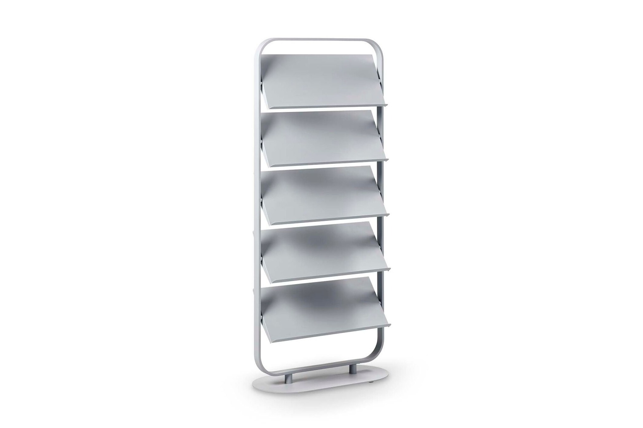 De Cascanco Focus is een brochurestandaard met vijf multifunctionele panelen, die in elk gewenste stand te fixeren zijn. De panelen en het frame zijn van staal RAL 9006. Verbindingen in gepolijst aluminium. Over Cascando